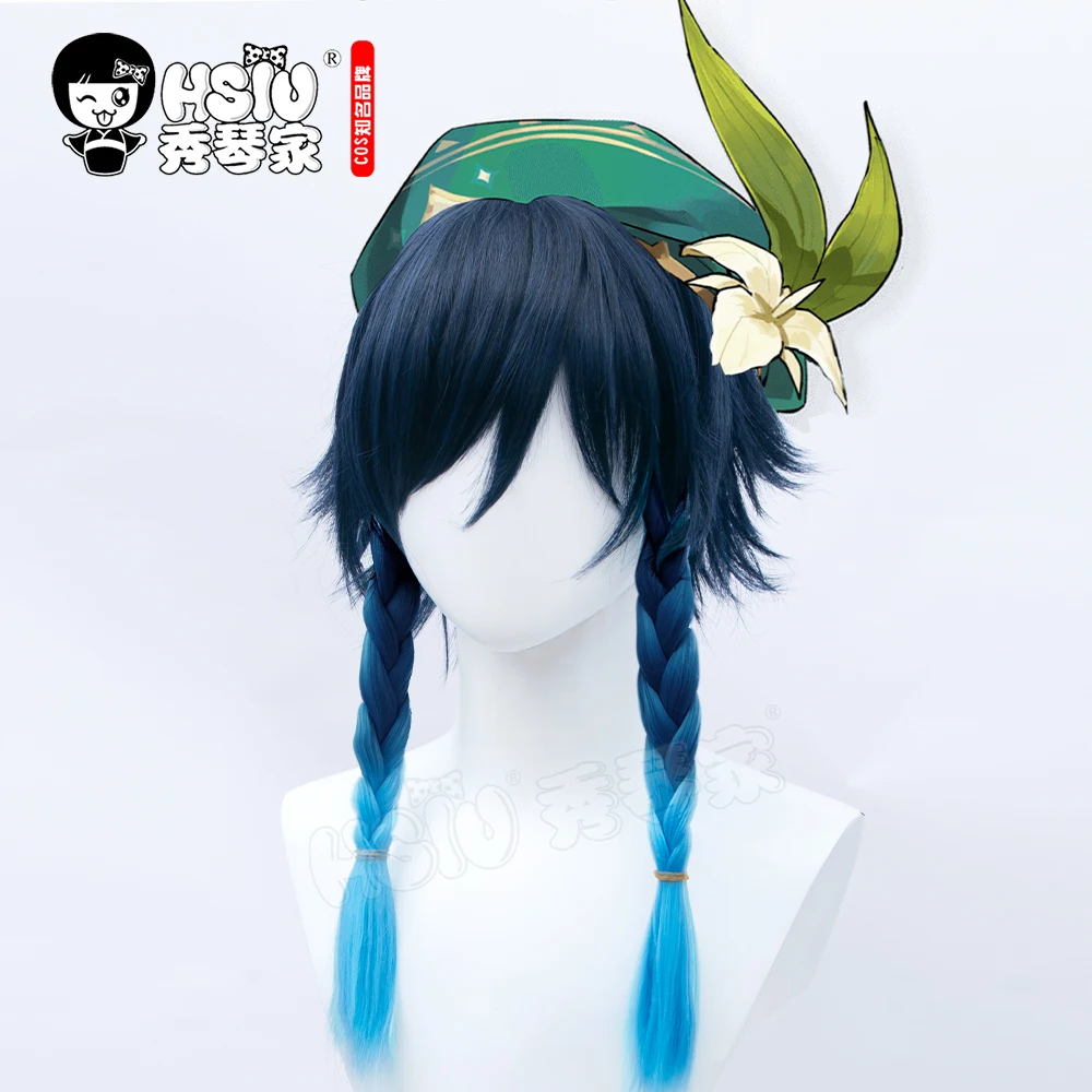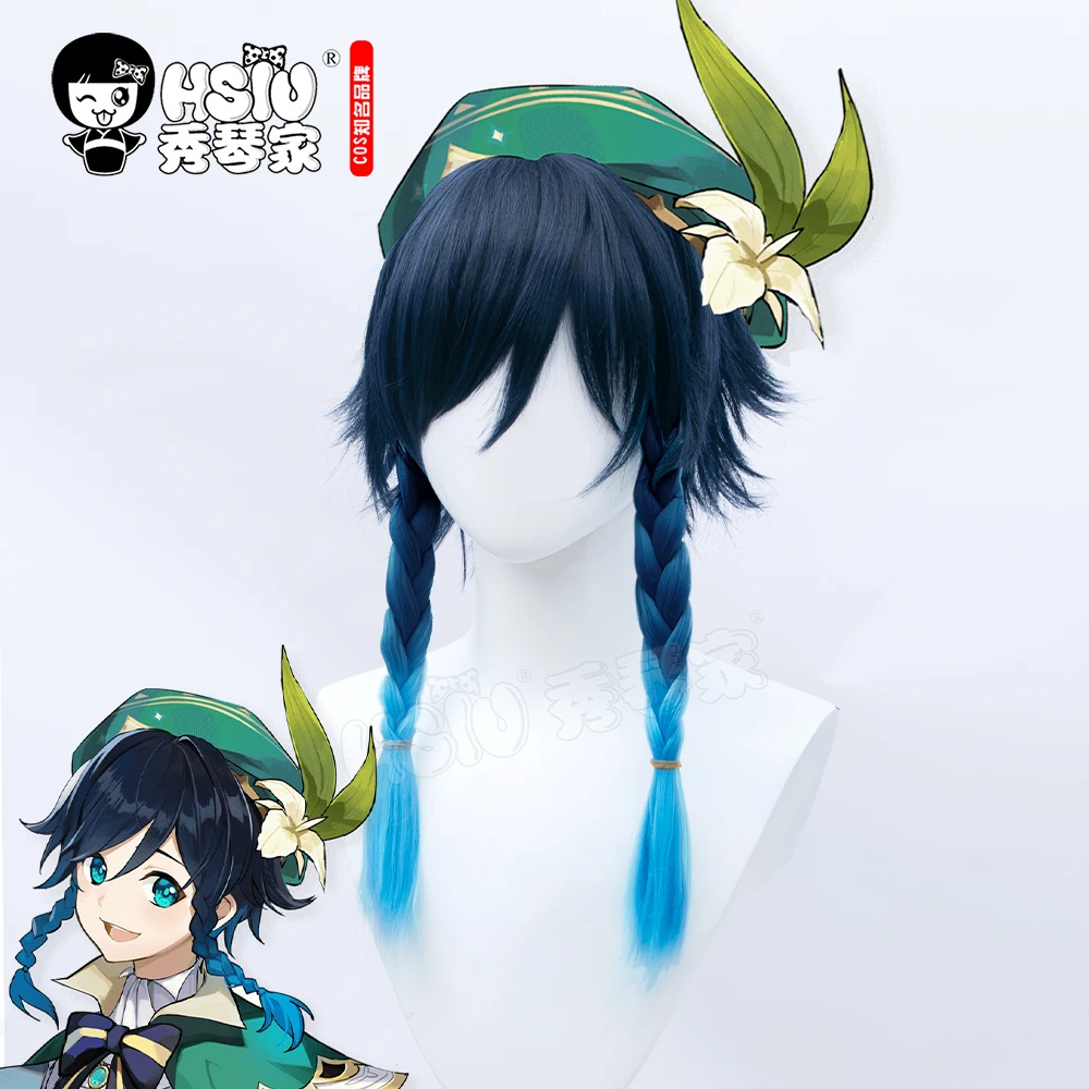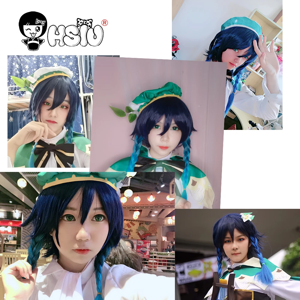 Парики HSIU Game Genshin Impact Venti для косплея, короткие волосы с синим градиентом, термостойкие синтетические волосы + Бесплатный подарок, фирменный парик, Кепка