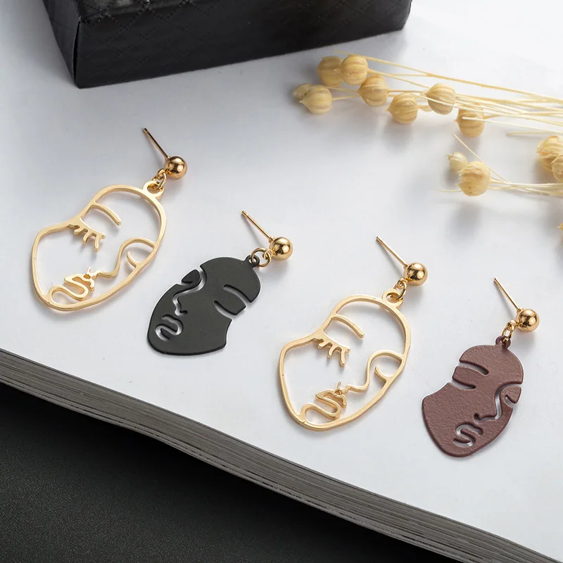 Серьги в виде лица золотого цвета для женщин, креативные ажурные кр...