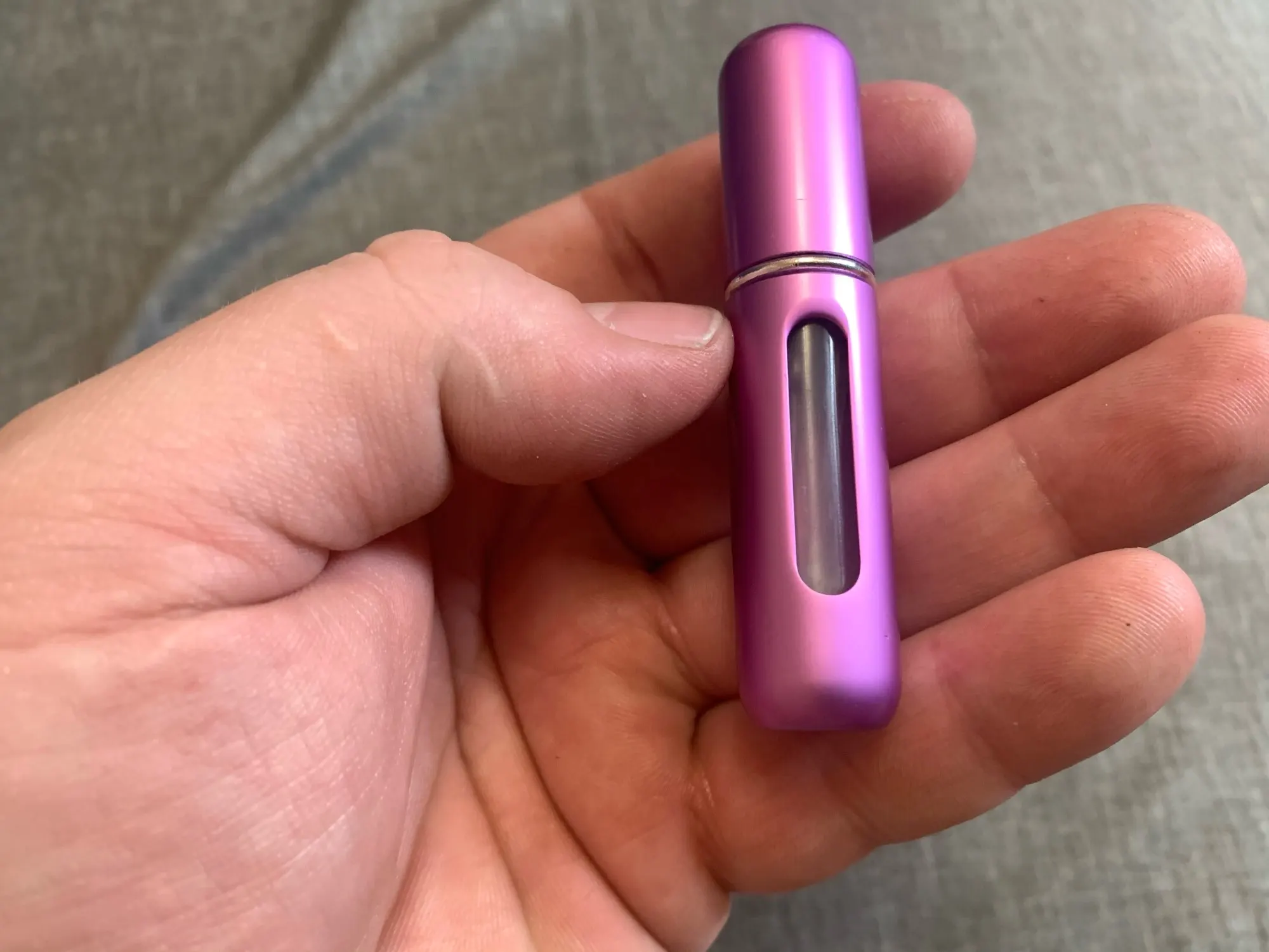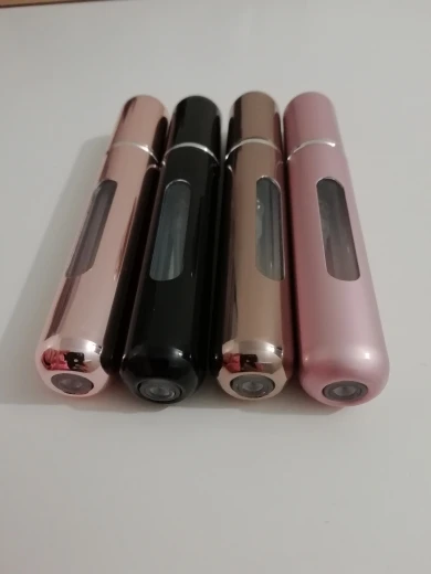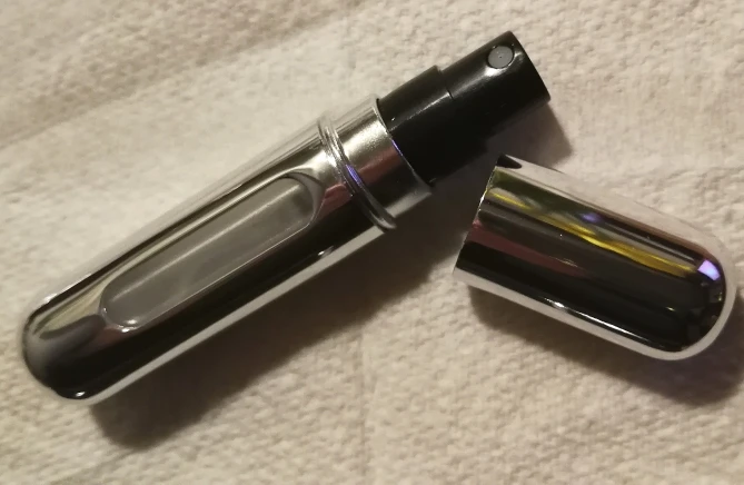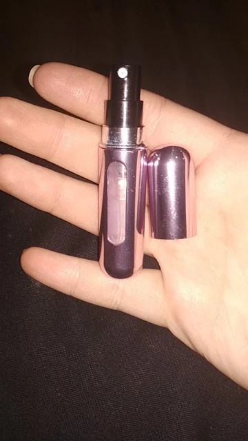 Как видно на фотографиях, за исключением того, что металл имеет немного больше блеска, чем ожидалось, но меня это не беспокоит. Спрей очень хороший, у него тонкий и однородный луч, а также много места. Единственным недостатком является то, что отверстие, которое загружает духи, несколько меньше, чем обычно, вы должны положить еще один кусок пластика в тюбик вашего обычного духов, чтобы он мог быть загружен нормально. Еще одно решение-сначала распылить духи в обычной бутылке распылителя, которая приспосабливается к металлическому распылителю и заряжать духи. Кроме того, он очень милый и работает очень хорошо. Доставка в Испанию за 16 дней.