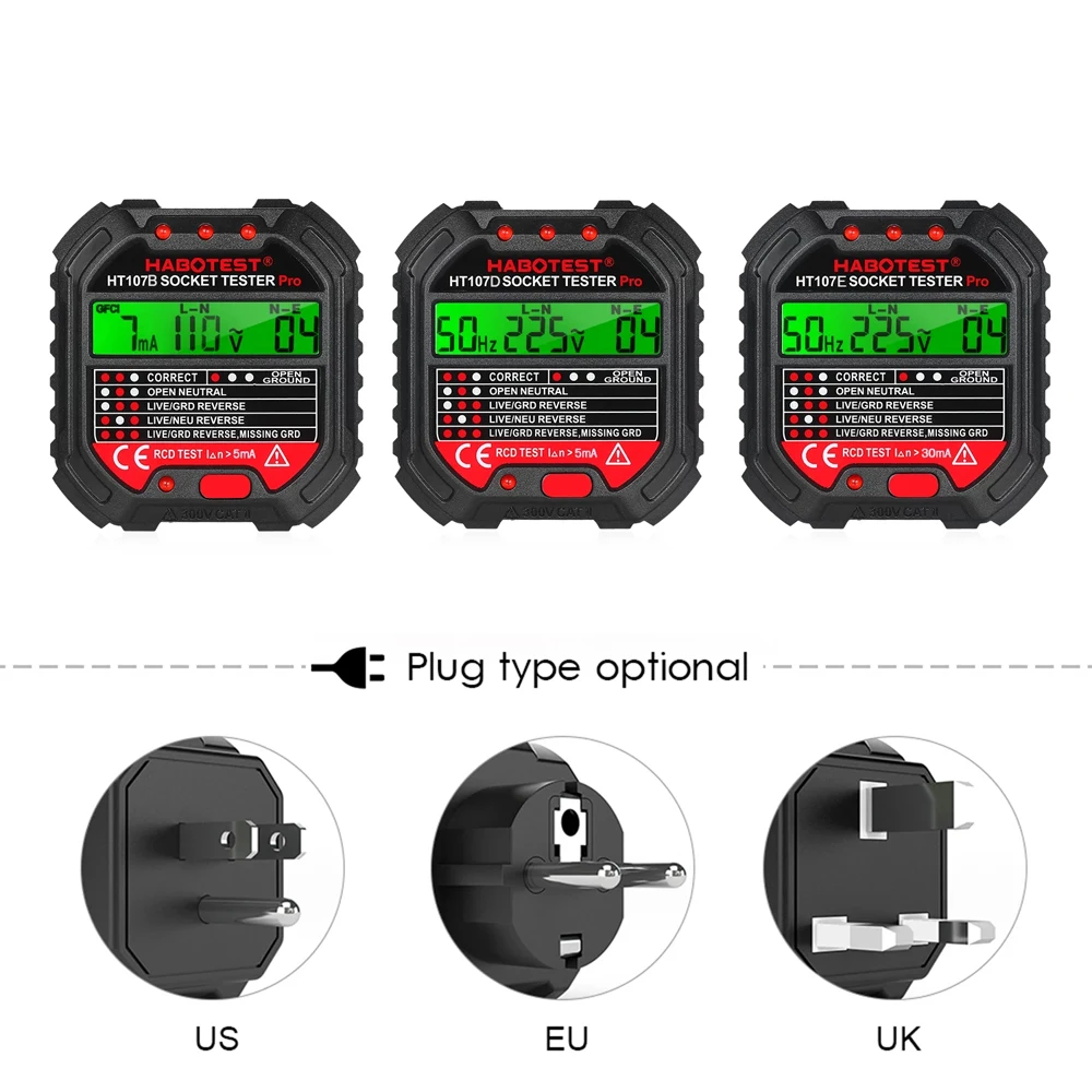 Тестер выходных отверстий HT107D с тестером розеток 90-250 В, автоматический детектор полярности электрического цепи, детектор выключателя