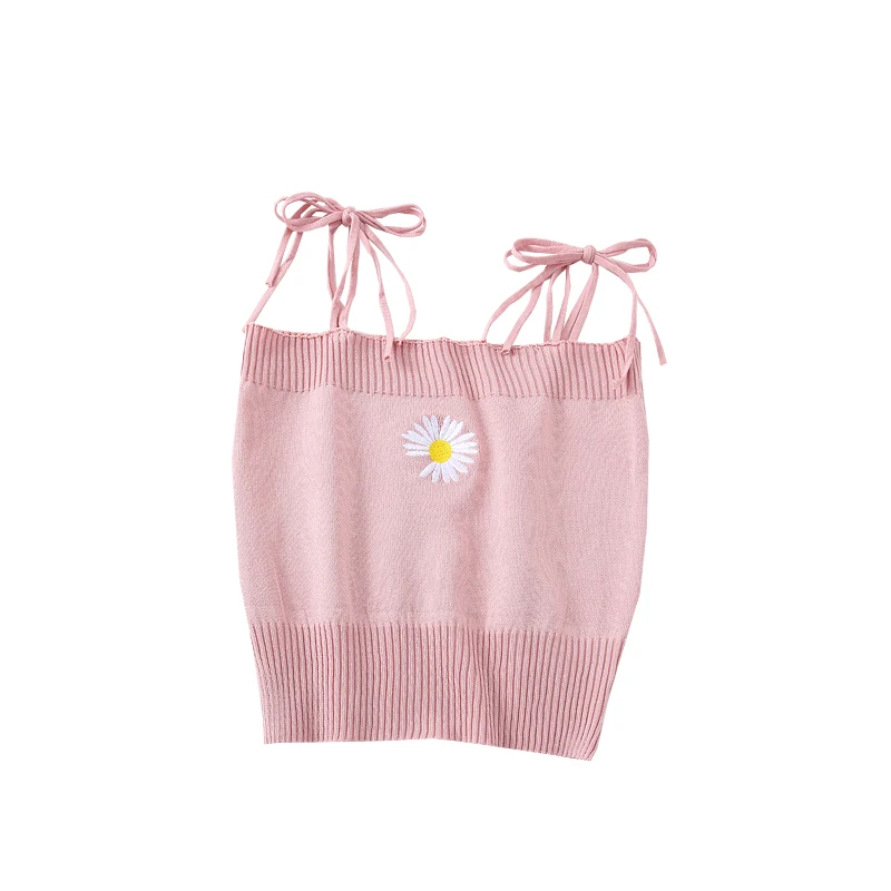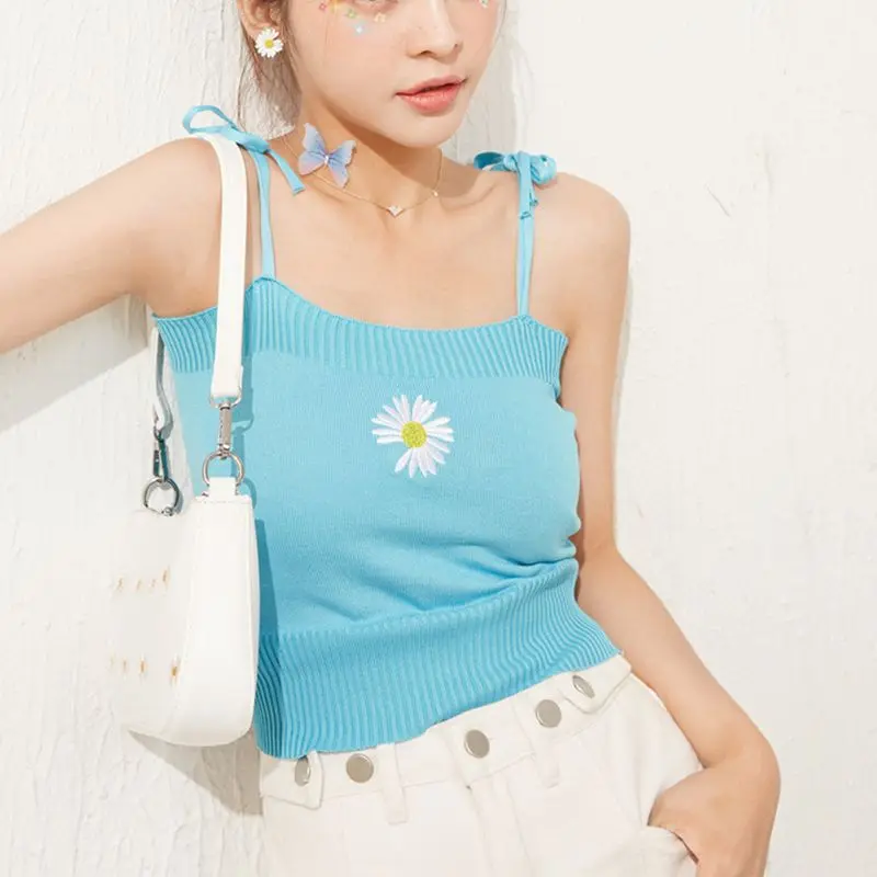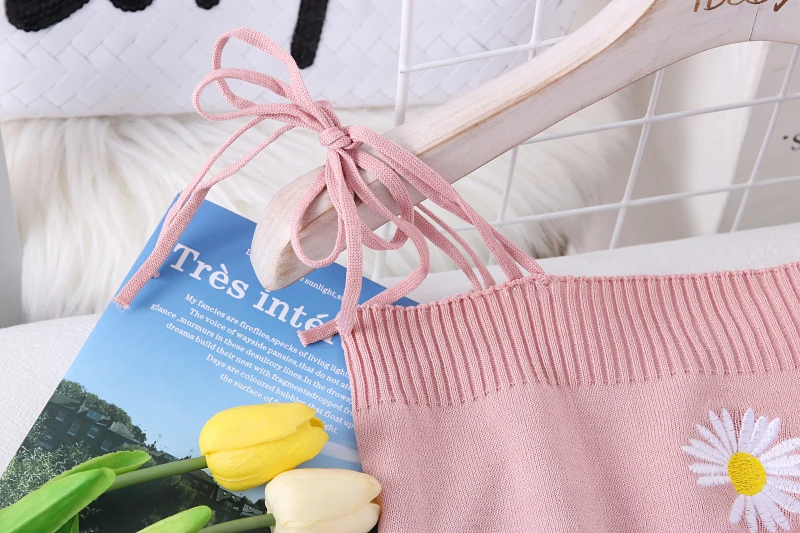 Новинка лета 2020, ТРИКОТАЖНЫЙ УКОРОЧЕННЫЙ ТОП с вышивкой для девочек, милая майка с бантом на шнуровке, короткий топ WX105