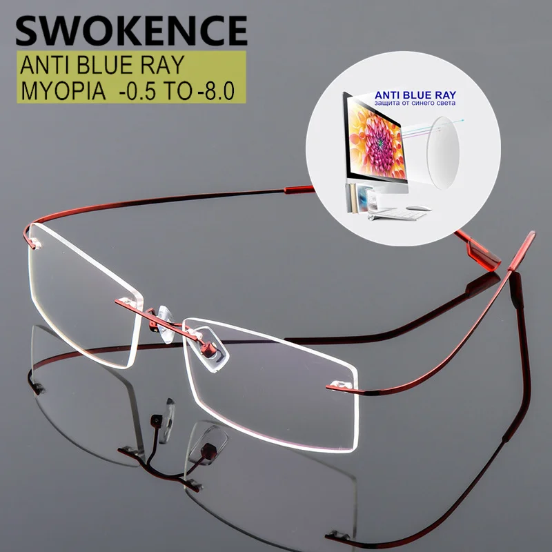 SWOKENCE Анти Blue Ray без оправы Рецептурные очки для близоруких-0...