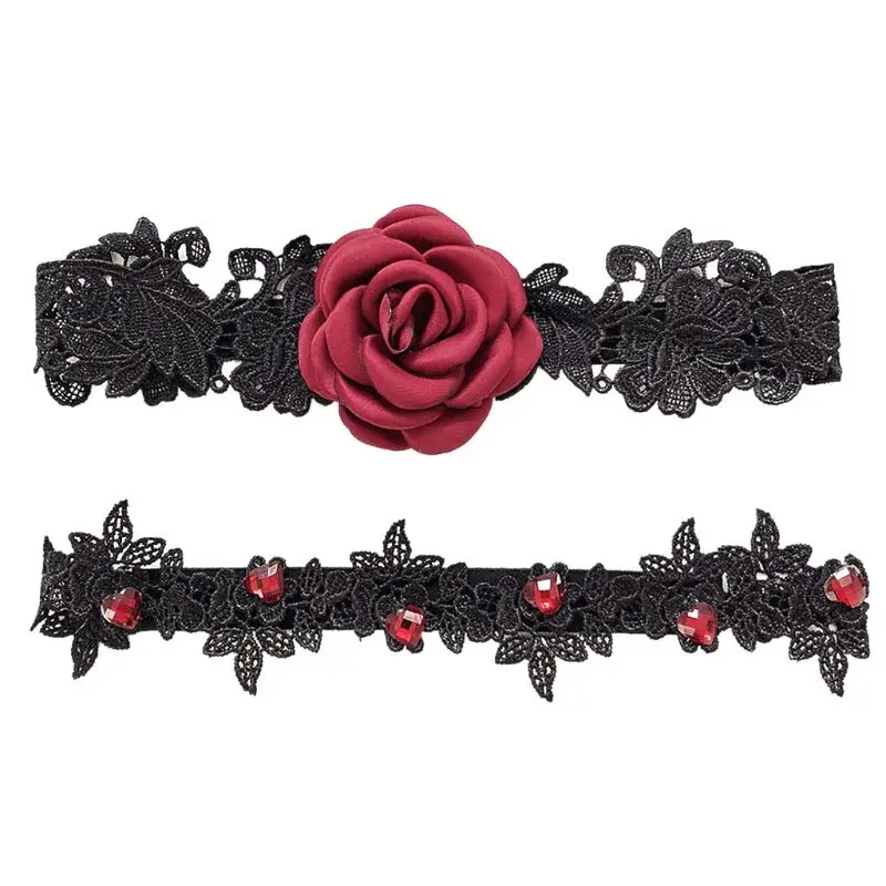 2 шт.компл. женские свадебные туфли-лодочки сапоги до бедра кольца ткань декорированная цветком розы с кружевом; С вышивкой Стразы Enbellishment свадебное платье с подвязками эластичный