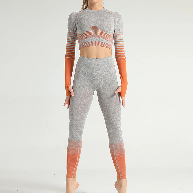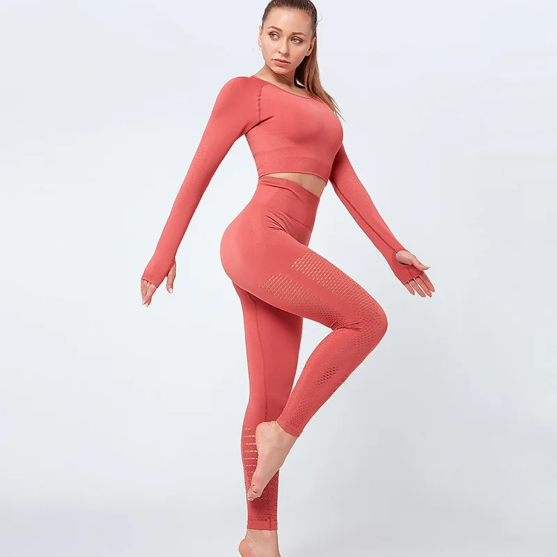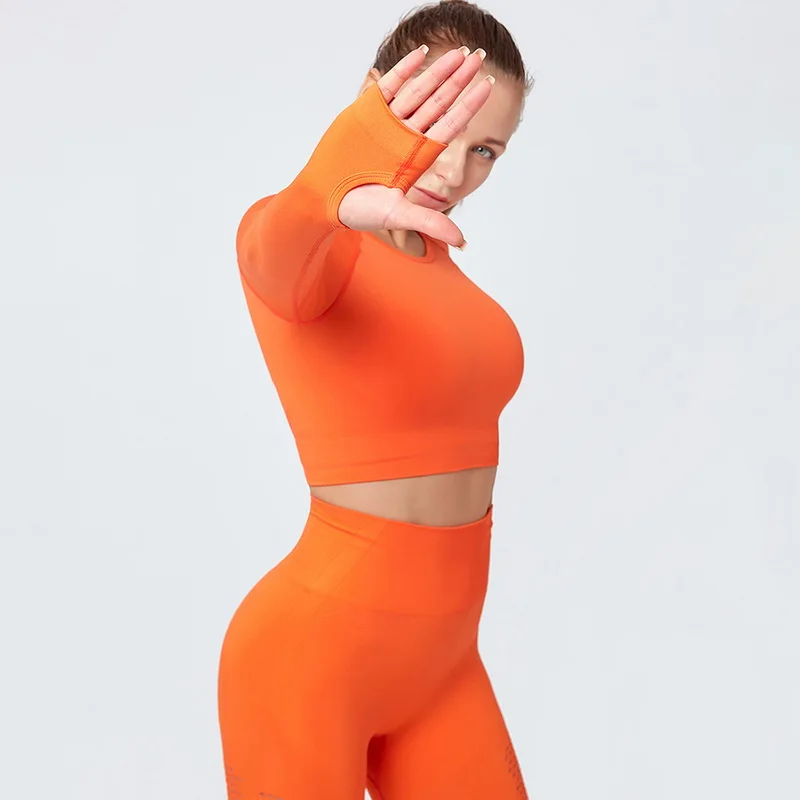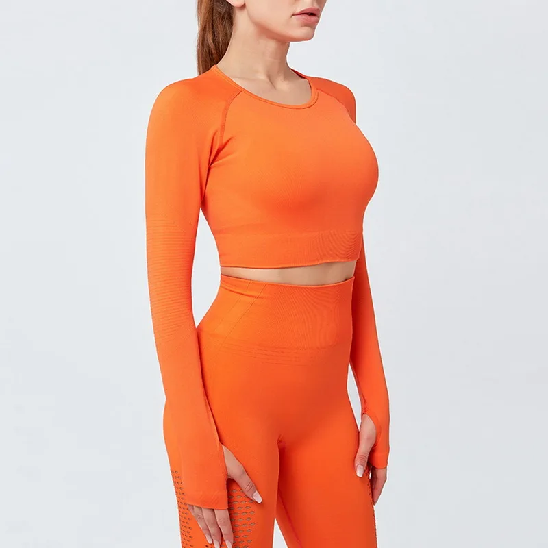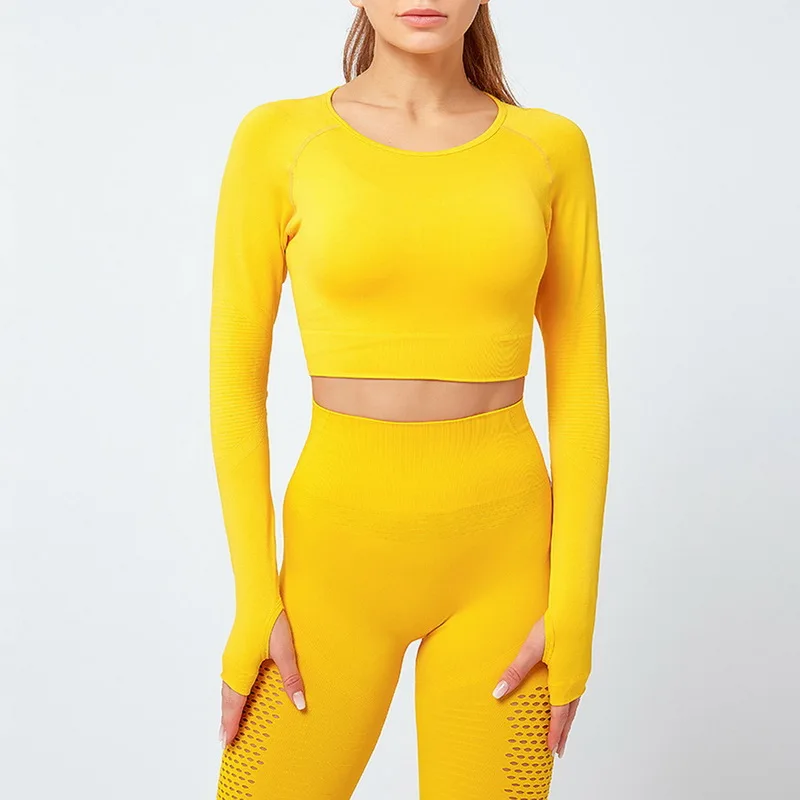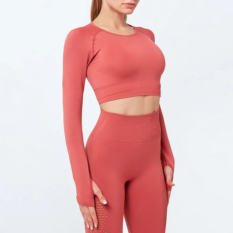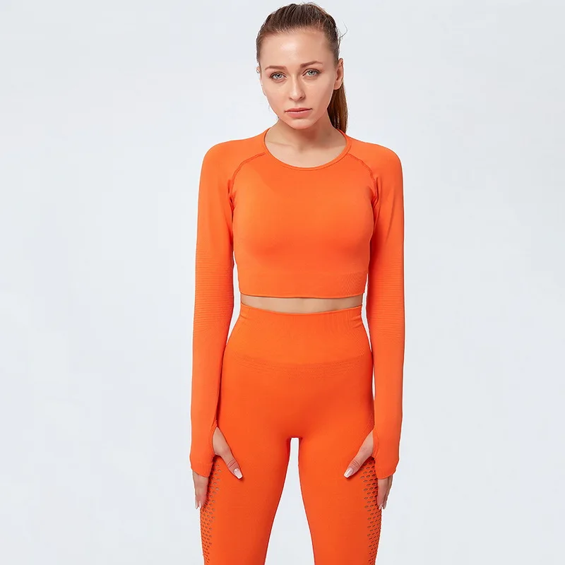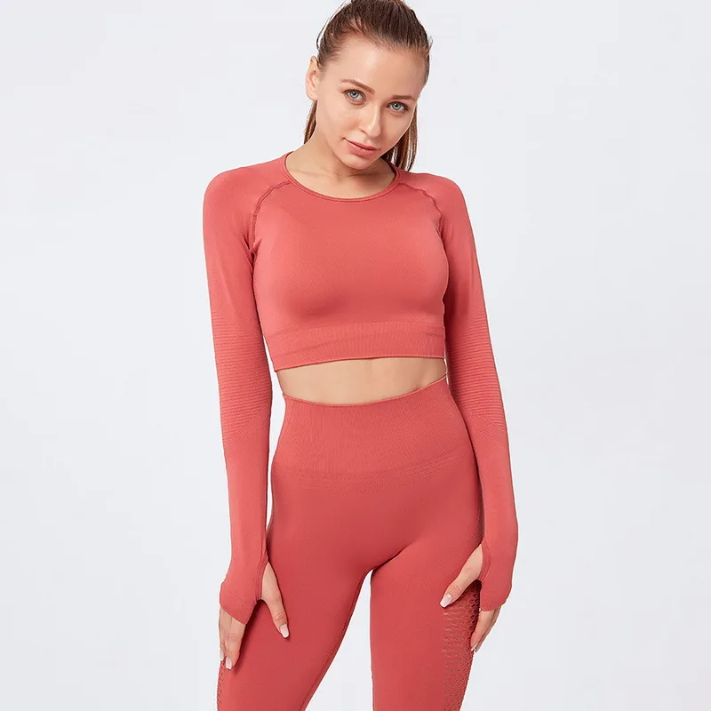 Одежда для тренажерного зала, короткий топ с длинным рукавом, рубашки, Женский бесшовный комплект для йоги, леггинсы с высокой талией для бега, тренировочные штаны, спортивные костюмы для фитнеса