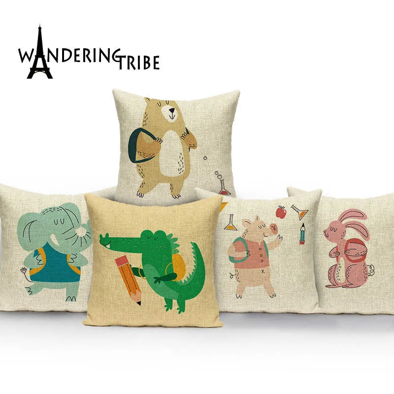 Декоративная Подушка Наволочка с мультяшным животным, украшение лошади, льняная наволочка для подушки, Наволочки, домашний декор для дивана, наволочка для подушки