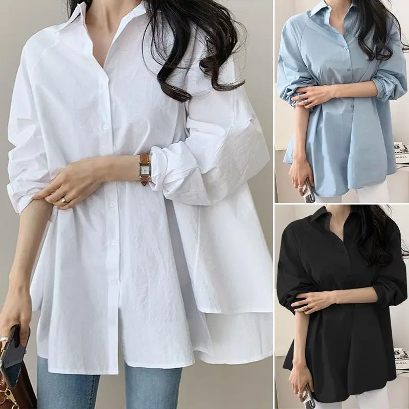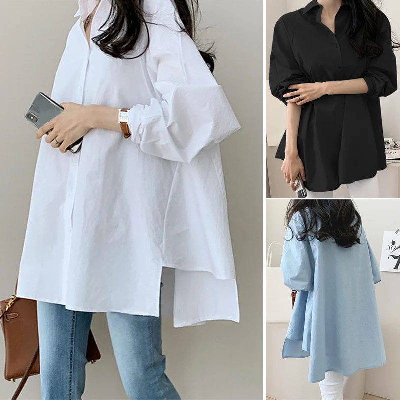 Женская Осенняя белая рубашка 2022, модные асимметричные топы с отложным воротником и длинным рукавом, повседневные однотонные Блузы