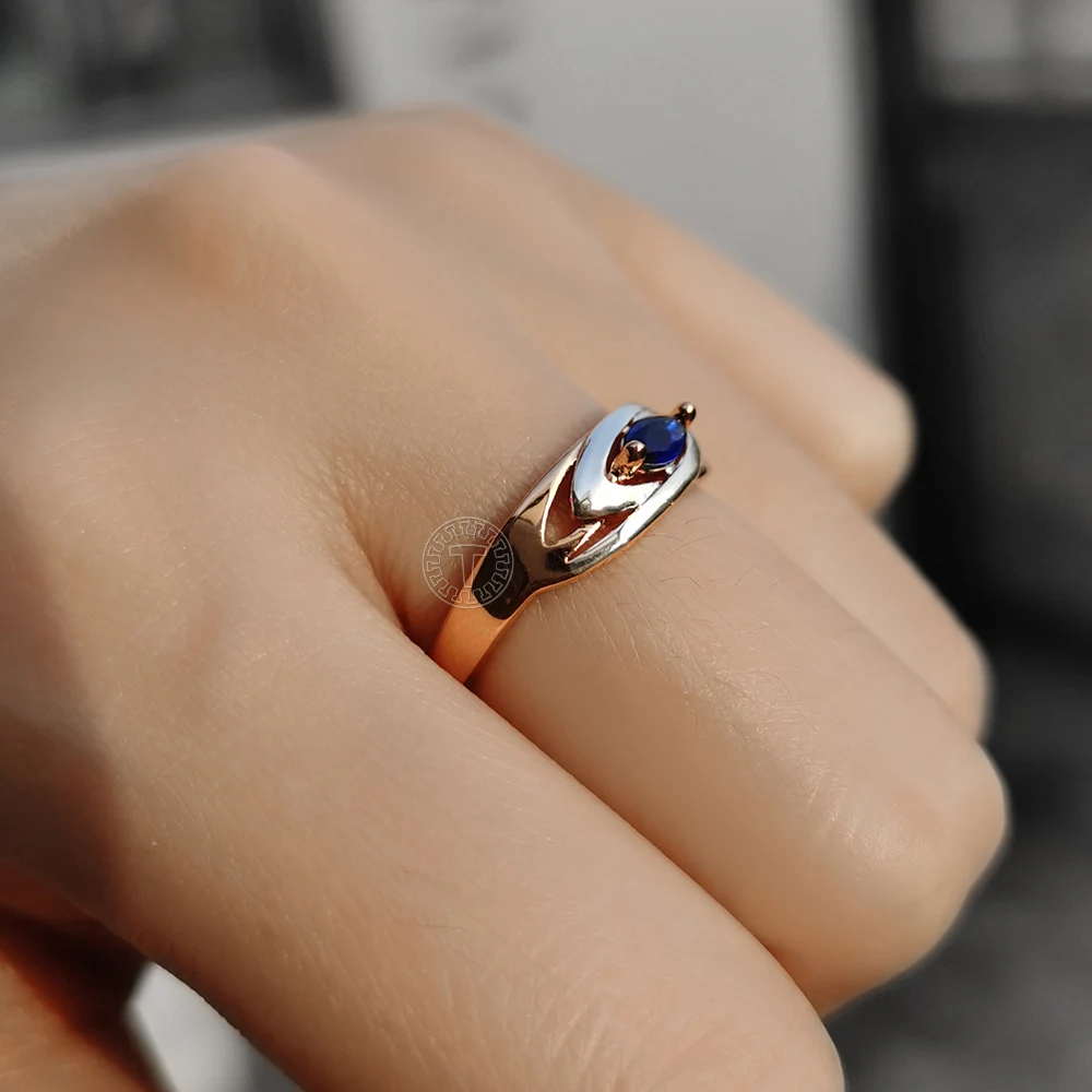 Кольцо женское из розового белого золота 585 пробы, 6 мм, с синим к...