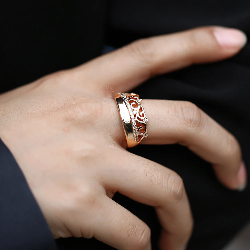 Кольцо с фианитами женское, ажурное обручальное Ювелирное Украшение...