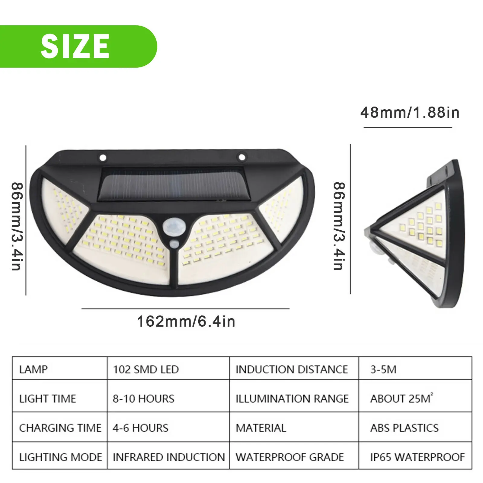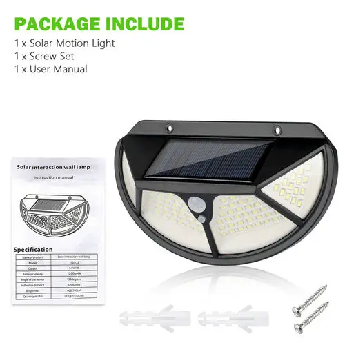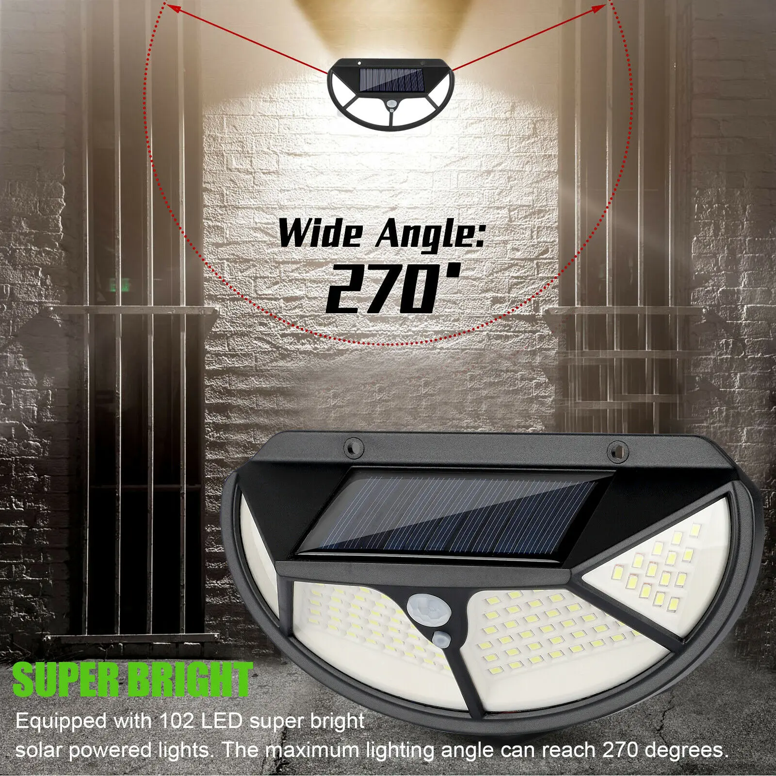 -Супер яркий: оснащен 102 светодиодный сверхъяркими солнечными лампами. Максимальный угол освещения может достигать 270 градусов.
