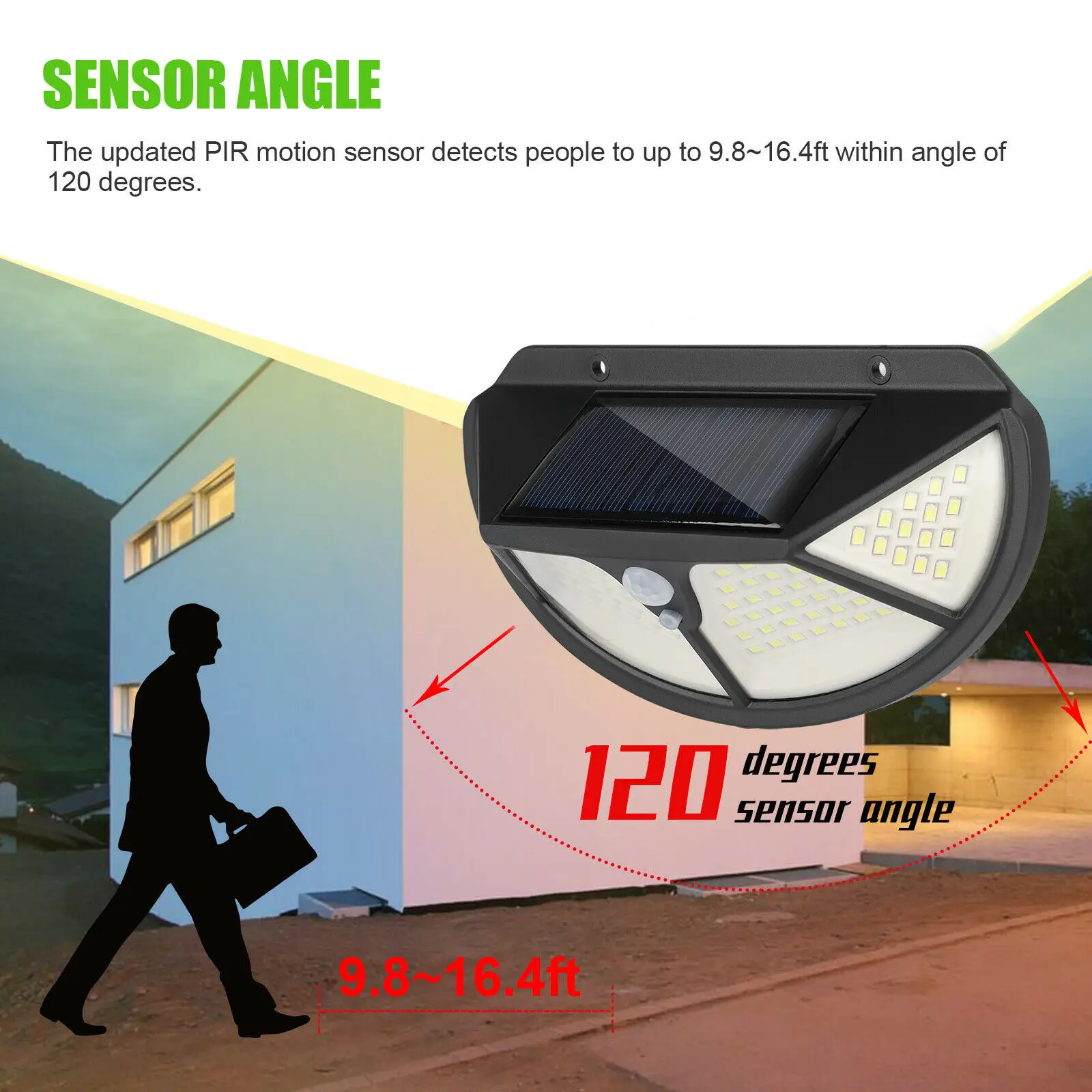-Сенсор угол: обновленная PIR датчик движения Сенсор обнаруживает людей до 9,8 ~ 16.4ft в угол 120 градусов.