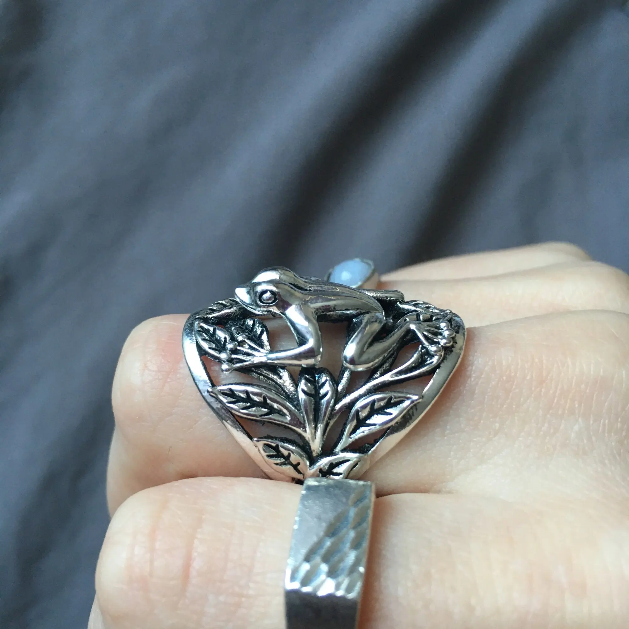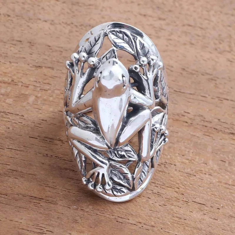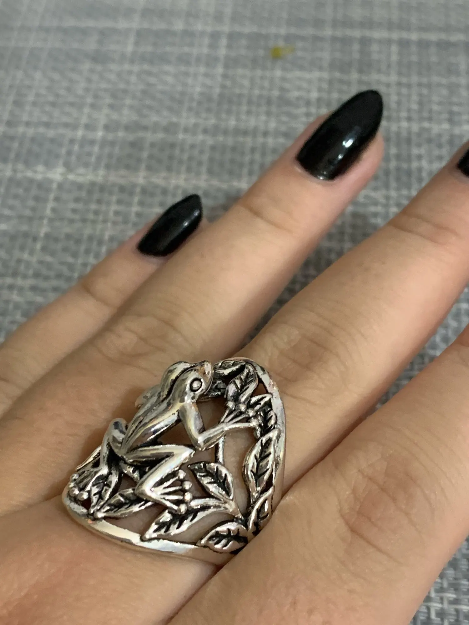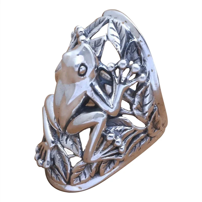 Кольцо женское, в стиле ретро, с полым рисунком лягушки