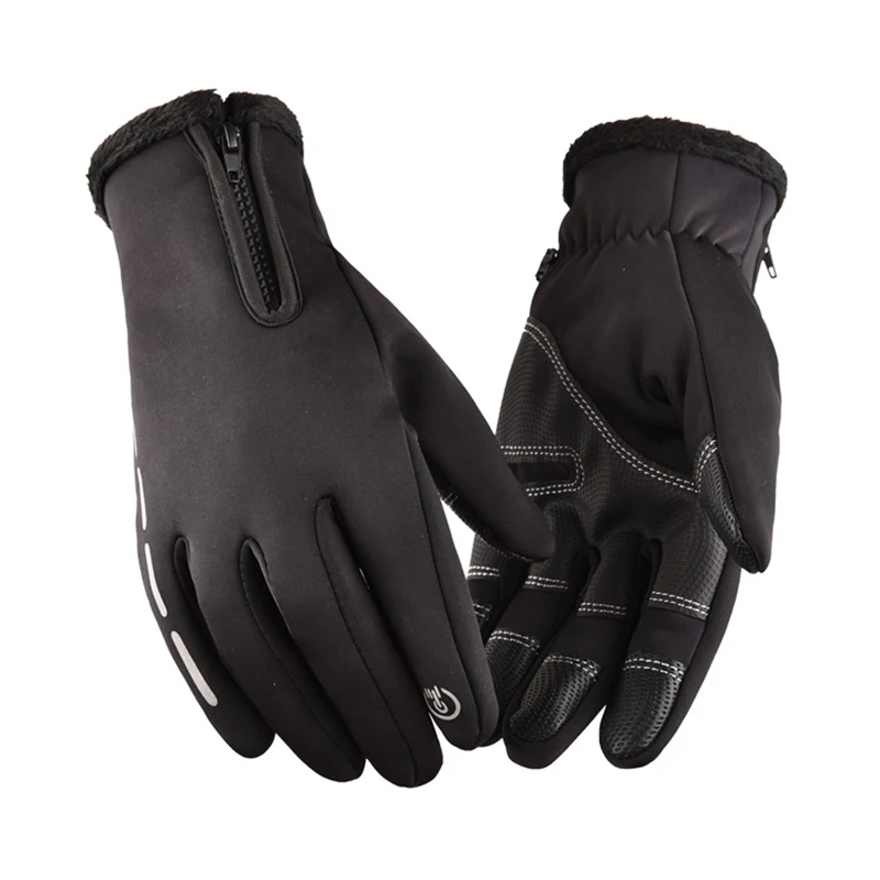 Велосипедные перчатки для активного отдыха, закрывающие пальцы, для сенсорных экранов, бархатные теплые ветрозащитные перчатки для рук, мужские и женские водонепроницаемые перчатки на молнии