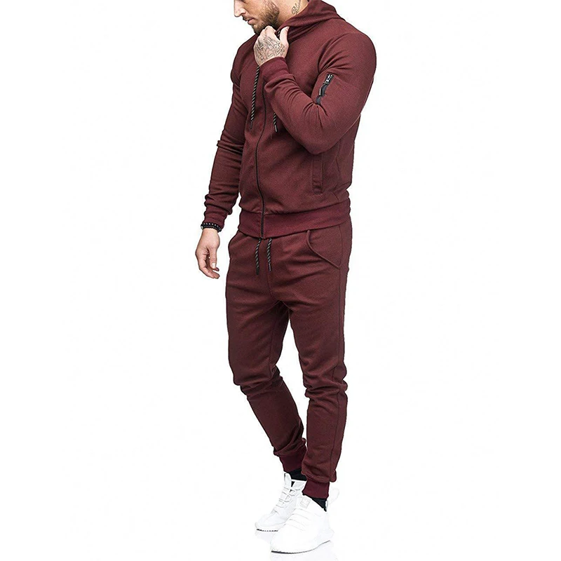 Спортивный костюм мужской с капюшоном, однотонный повседневный уличный кардиган для фитнеса и поездок, штаны и пальто, уличная одежда для бега, 2 предмета
