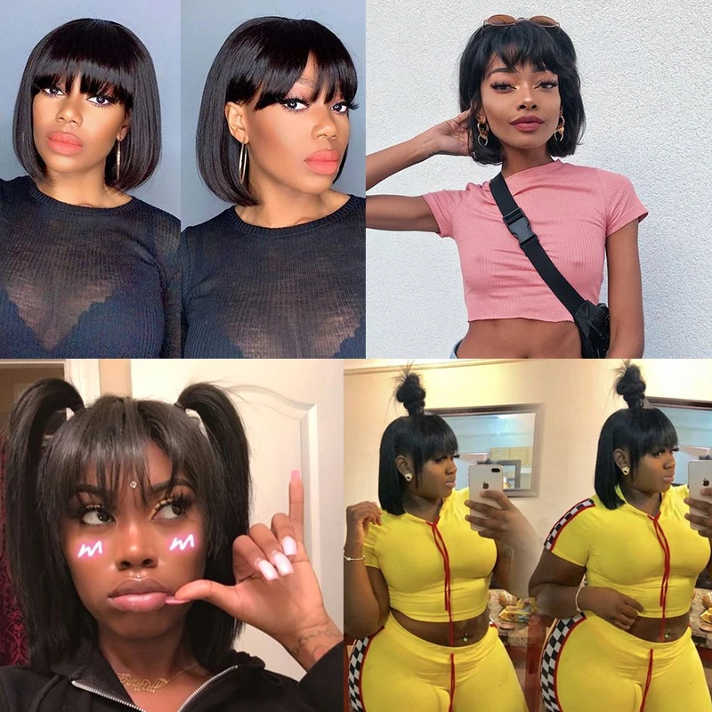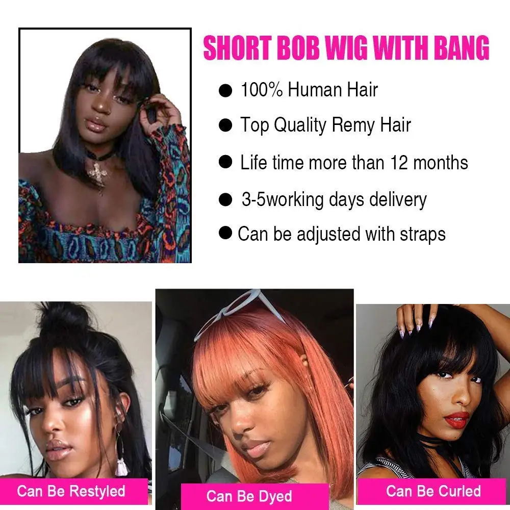 Rebecca прямой парик Боб с челкой короткий Боб человеческие волосы парики с челкой цветные человеческие волосы парик бразильские Омбре цветные волосы Remy