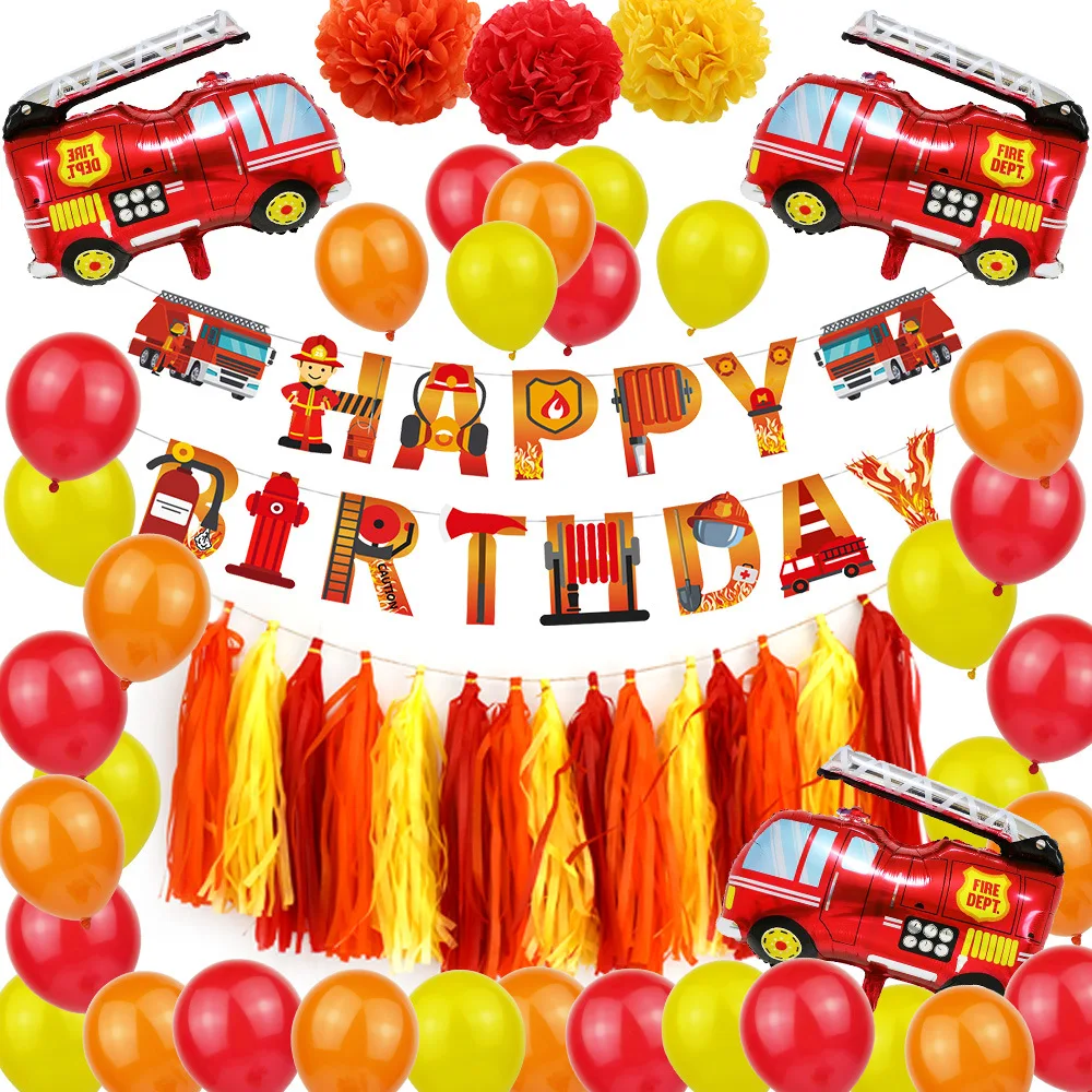 Вечерние стаканчики для пожарных, одноразовая посуда, бумажные стаканчики, набор воздушных шаров для пожарной машины, декор для детского душа, принадлежности для баннеров на день рождения
