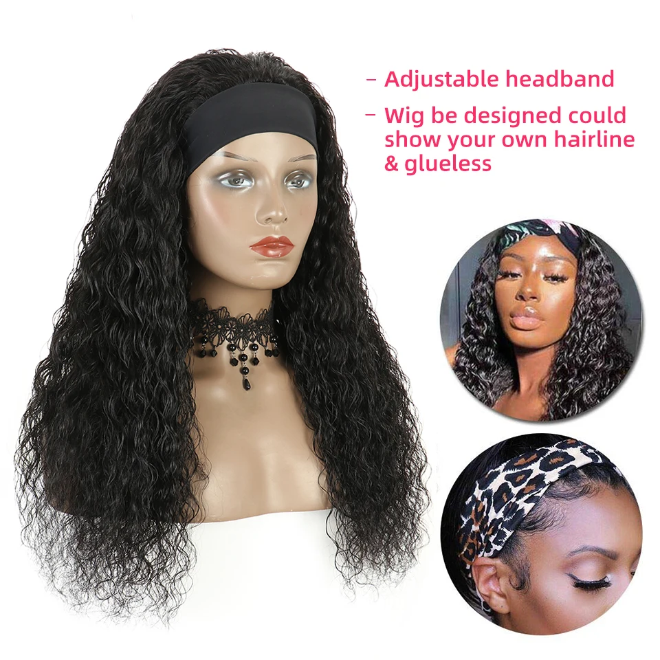 Бразильские волнистые натуральные волосы парик с головной повязкой ...