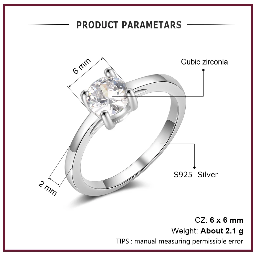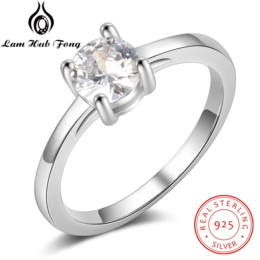 Простые Свадебные кольца 925 стерлингового серебра с прозрачным кубическим цирконием, обручальные серебряные кольца 925 для женщин, ювелирные изделия в качестве подарка (Лам)