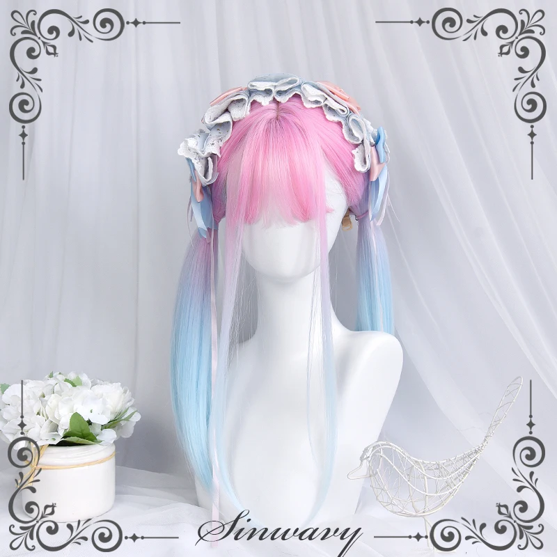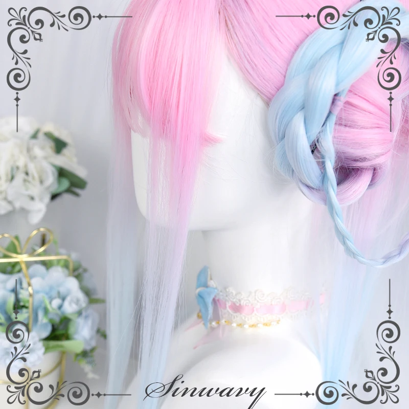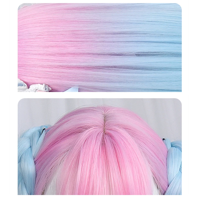Женский неоновый парик Лолита с градиентом, розово-голубой, длинные прямые волосы, милая челка, для взрослых, для девочек, для косплея, повседневная одежда