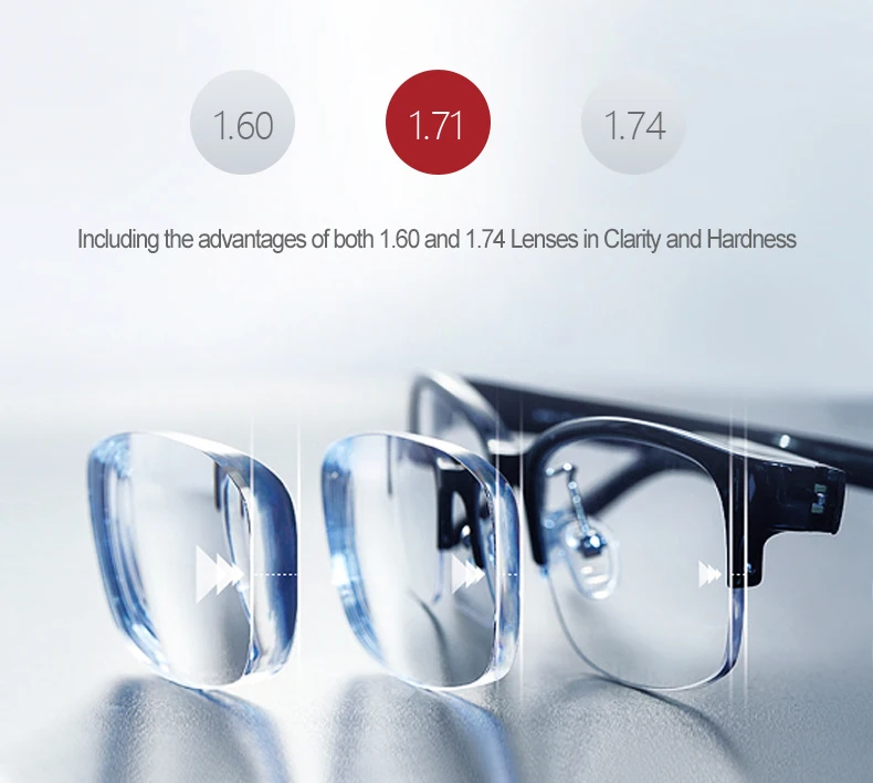 Асферические Оптические Линзы для очков с высоким числом Abbe, защита от царапин и излучения, Индекс преломления 1,71