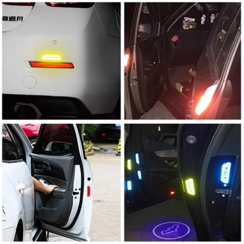 4 шт.лот, наклейка с предупреждающим знаком для открытия дверей автомобиля, светоотражающая лента, наклейки для безопасности при ночном вождении, внешняя отделка автомобиля