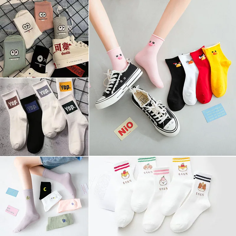 5 парупак. женские носки из хлопка для девочек, футболка с забавным...