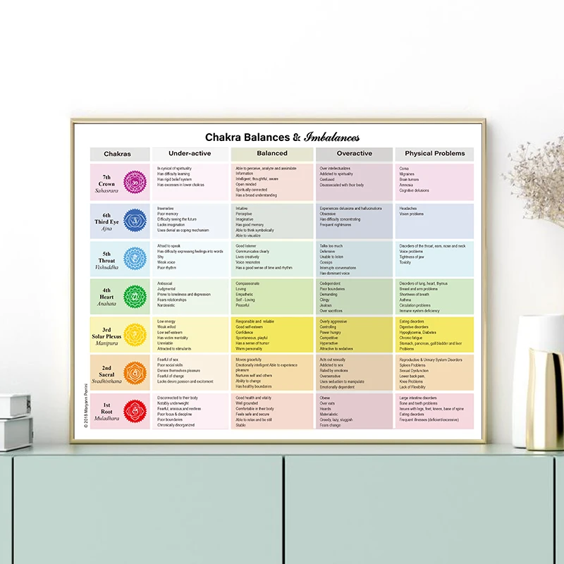 7 чакр, символов, гид, печать на холсте, Постер для йоги, иллюстрация чакр, живопись для йоги, Настенная картина, подарки для йоги, декор для спортзала на стену