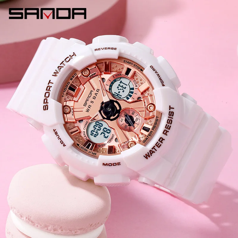 Женские спортивные часы SANDA, часы цвета розового золота и белого ...
