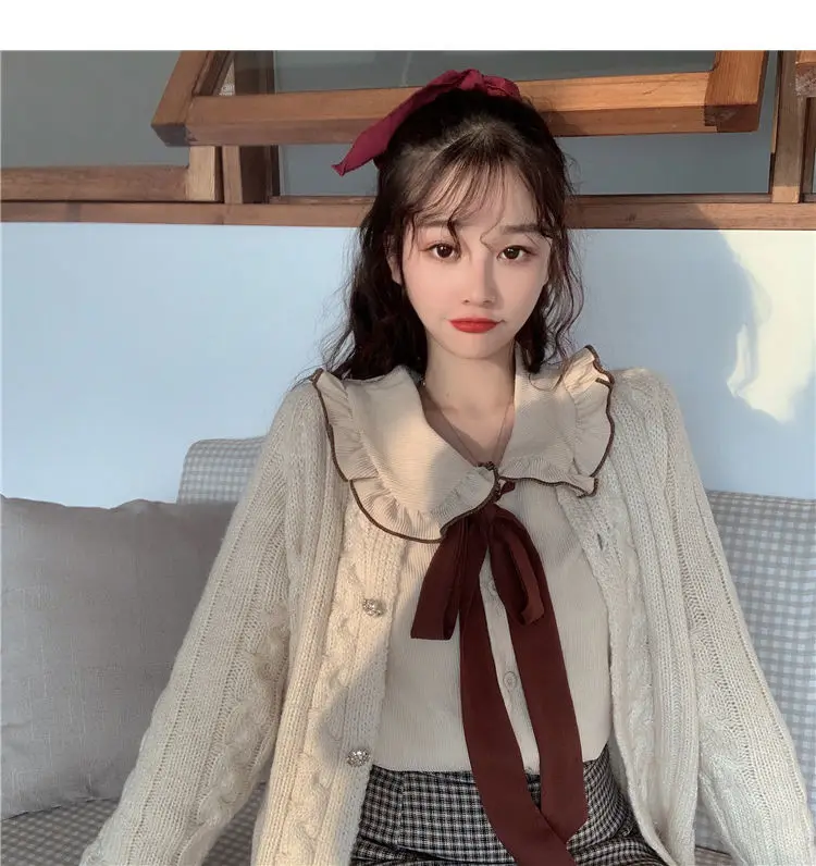 Блузка женская, с бантом, воротником Питер Пэн, в Корейском стиле