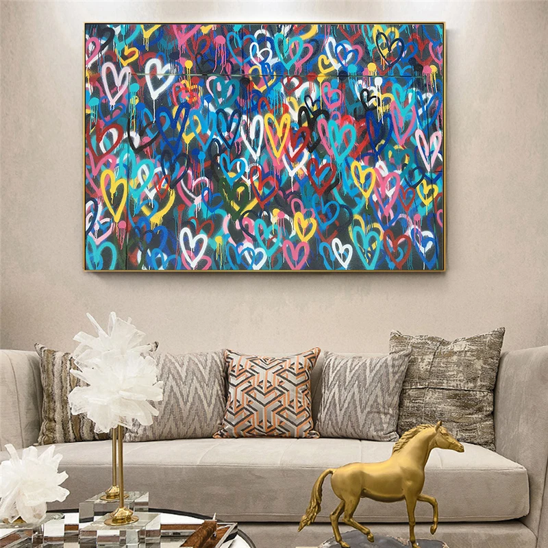 Абстрактное изображение Бэнкси, любовь, сердца, граффити, холст, по...