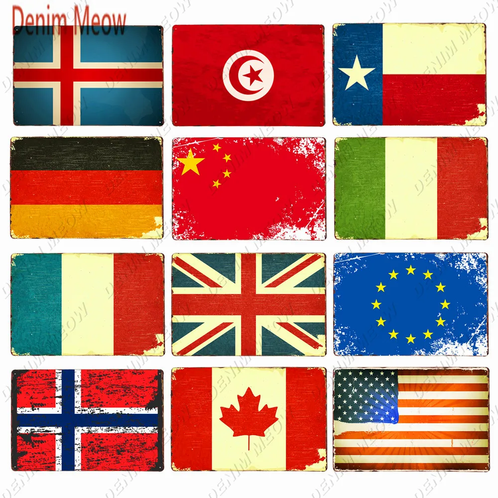 Винтажный флаг страны по всему миру металлический знак Британский немецкий Itanlian США табличка магазин знак бара Ирландия 30x20 см Декор WY143