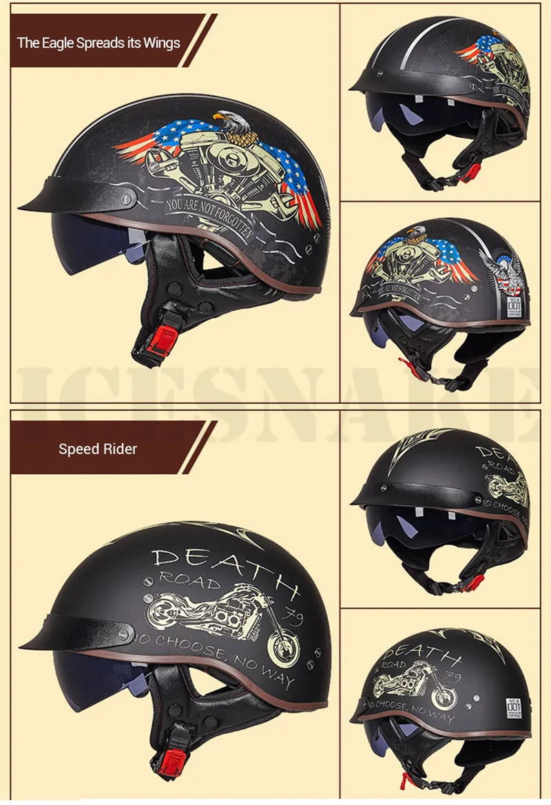 Мотоциклетный шлем, винтажный шлем для мотоциклистов с открытым лиц...