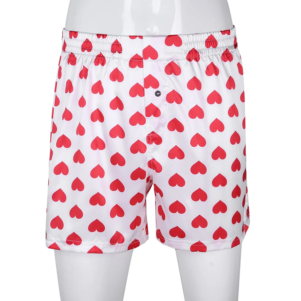 Нижнее белье мужское, мягкие боксеры с принтом сердечек, пикантные легкие повседневные шорты для геев, пляжная одежда, свободные короткие штаны для отдыха