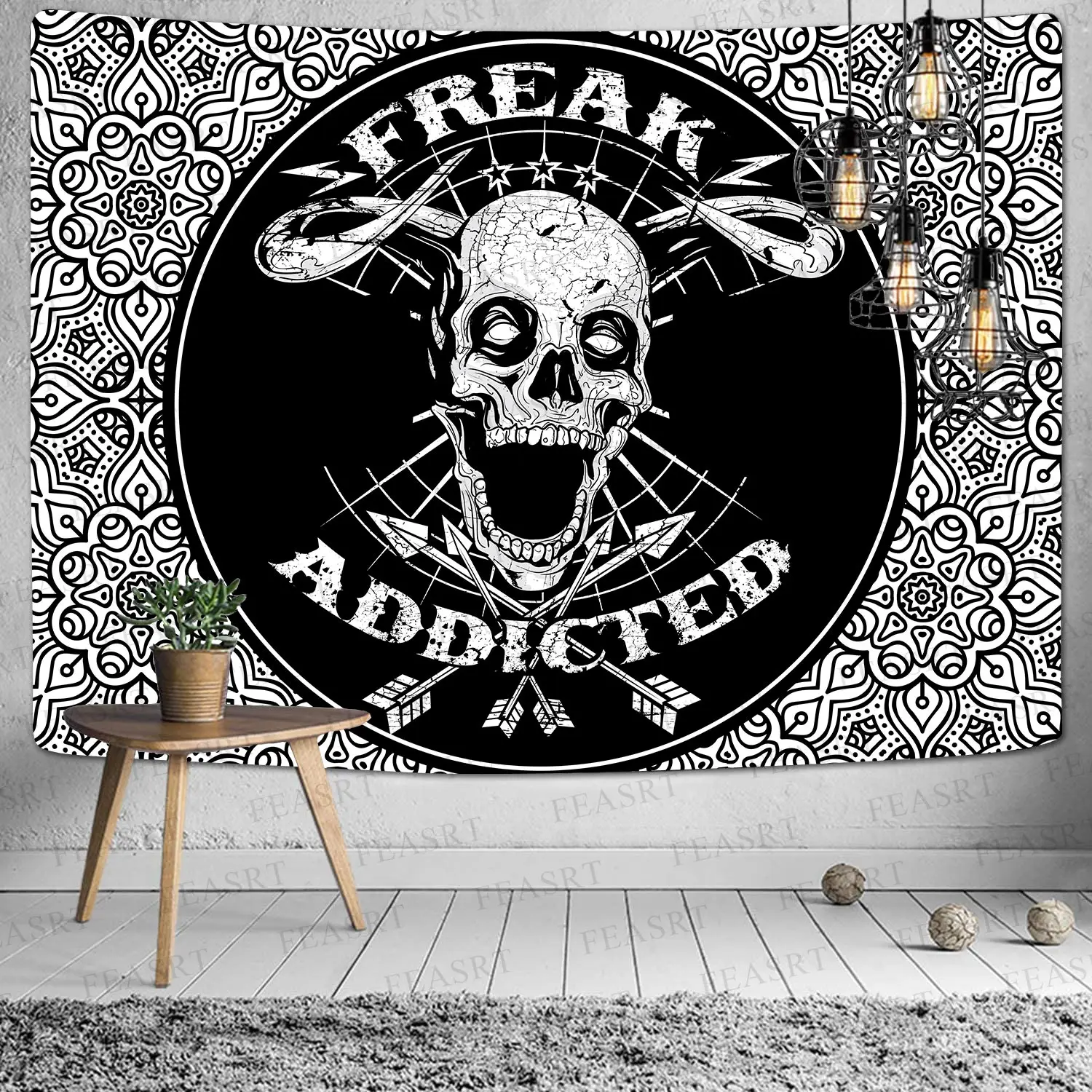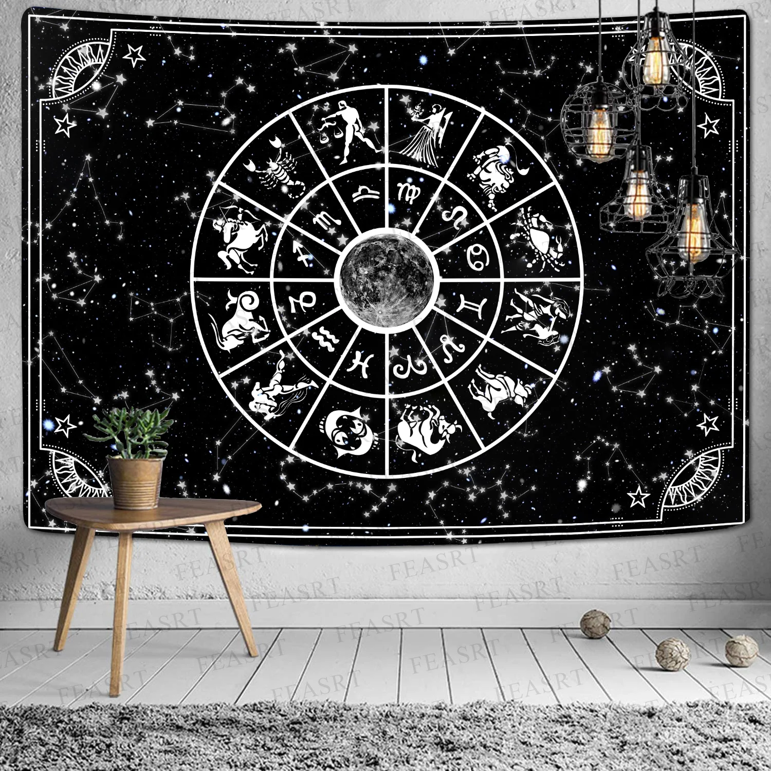 Готический гобелен с черепом, звездное небо, луна, звезды, черно-белая гора, романтическое созвездие, настенное украшение, одеяло