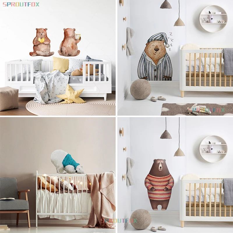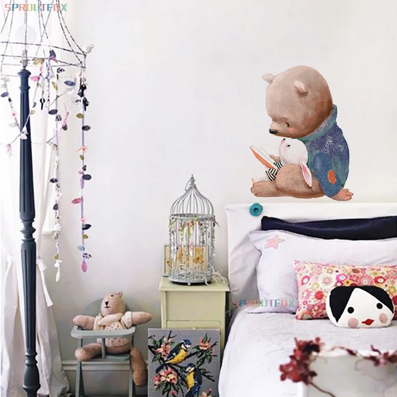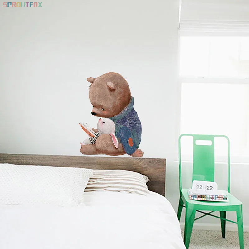 Милый медведь с маленьким Кроликом, наклейка на стену для детской комнаты, гостиной, детской комнаты, украшение для дома, Мультяшные животные, папа, Медведь, Кролик, наклейка