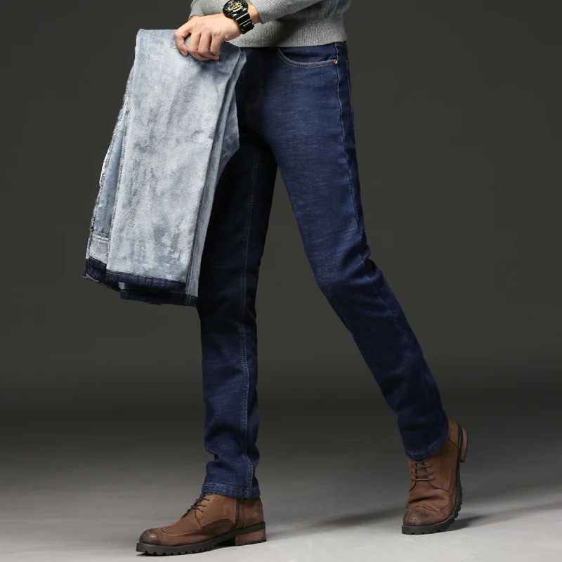 Джинсы мужские зимние, на флисе, прямые, теплые