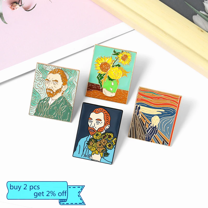 Эмалевые булавки Ван Гога с изображением подсолнуха и крика, броши ...