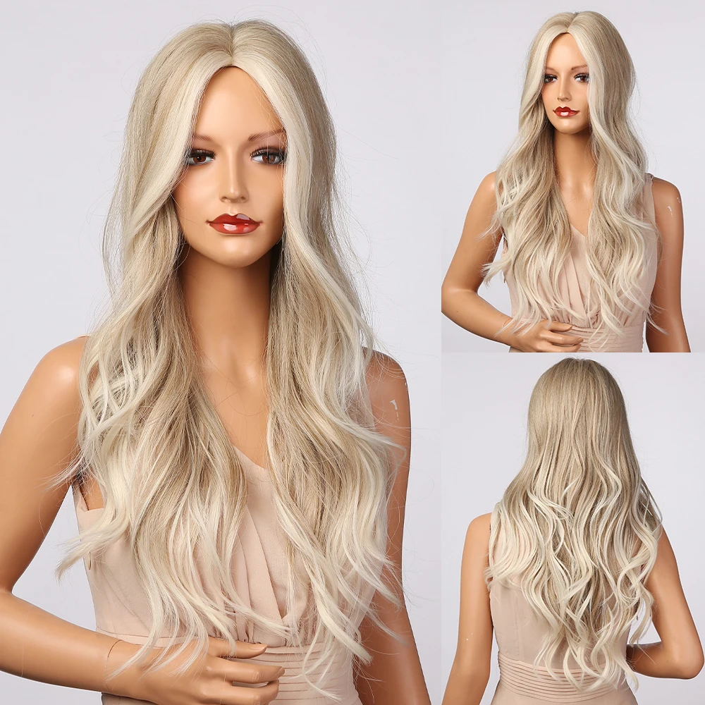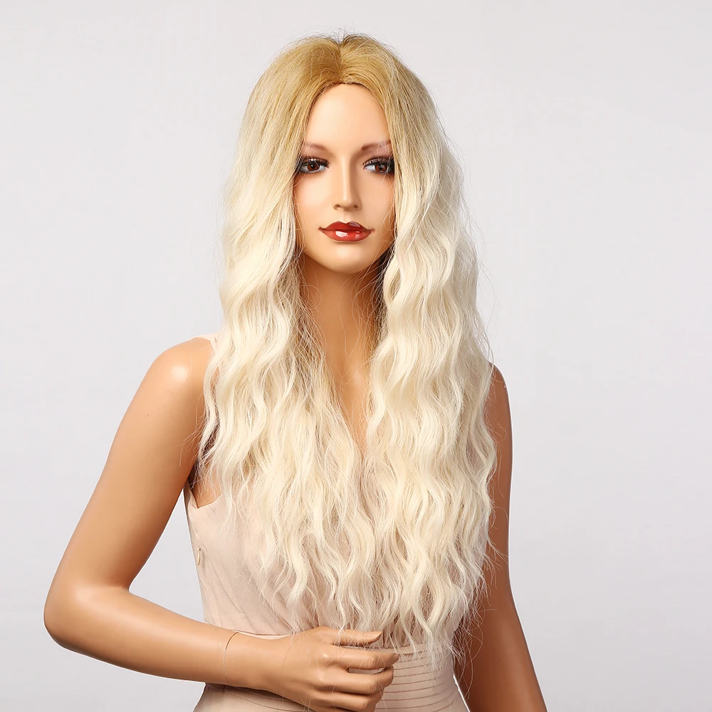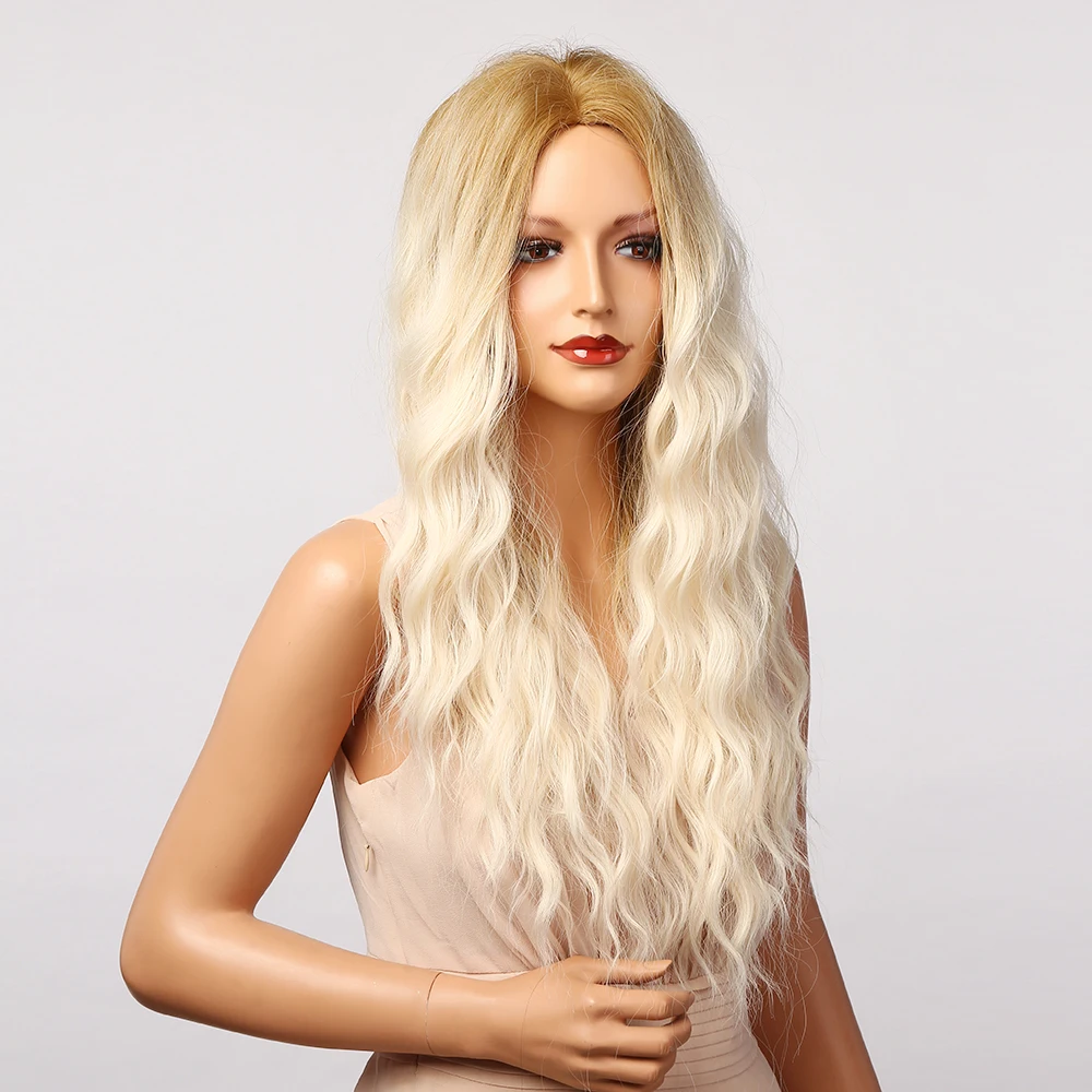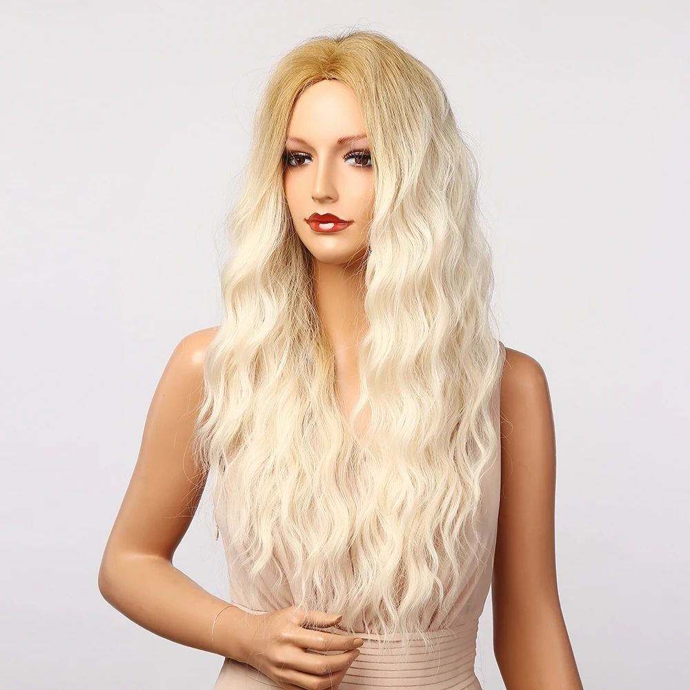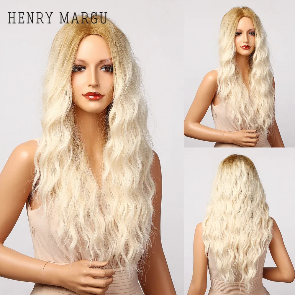 Генри MARGU длинные светлые белый эффектом деграде (переход от темного к волнистые синтетические волосы парик для Для женщин натуральные вьющиеся волосы парик Средняя часть Косплэй парики термостойкие