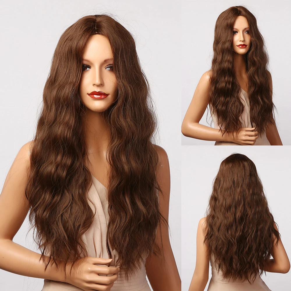 Длинные волнистые синтетические парики для женщин, темно-коричневые...