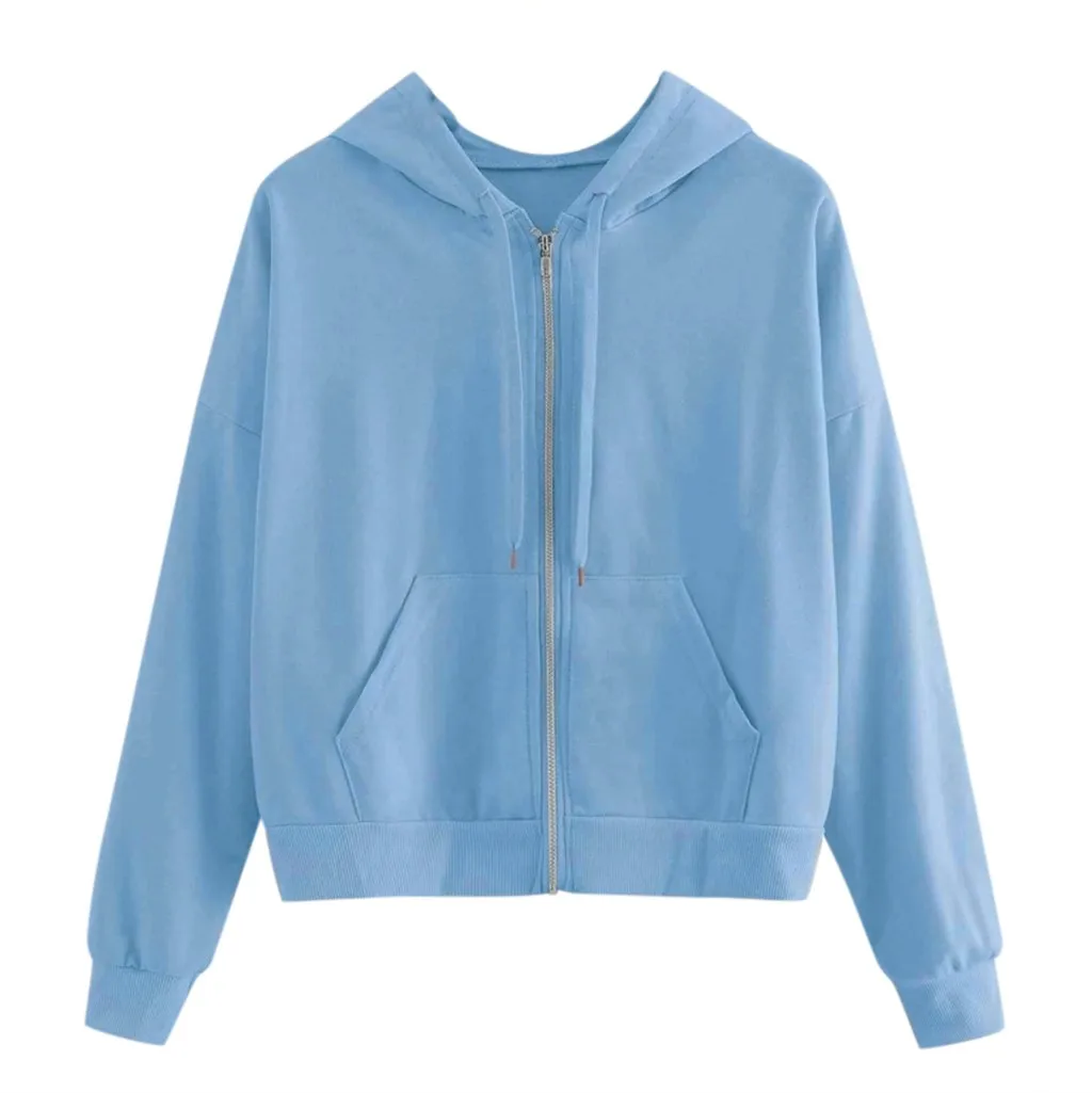 Однотонные женские укороченные топы на молнии, Свитшот, Повседневны...