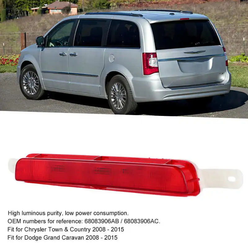 Тип изделия: высокий крепежный задний светильник Материал: пластик Цвет линзы: красный Лампочки в комплекте: Да Технология лампы: светодиодный OEM: 68083906AB / 68083906AC / 923-227 Приспособление: Подходит для Chrysler Town & кантри 2008 - 2015 Подходит для Dodge Grand Caravan 2008 - 2015