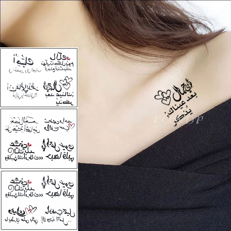Водостойкая Временная наклейка для татуировок, Арабские буквы, серд...