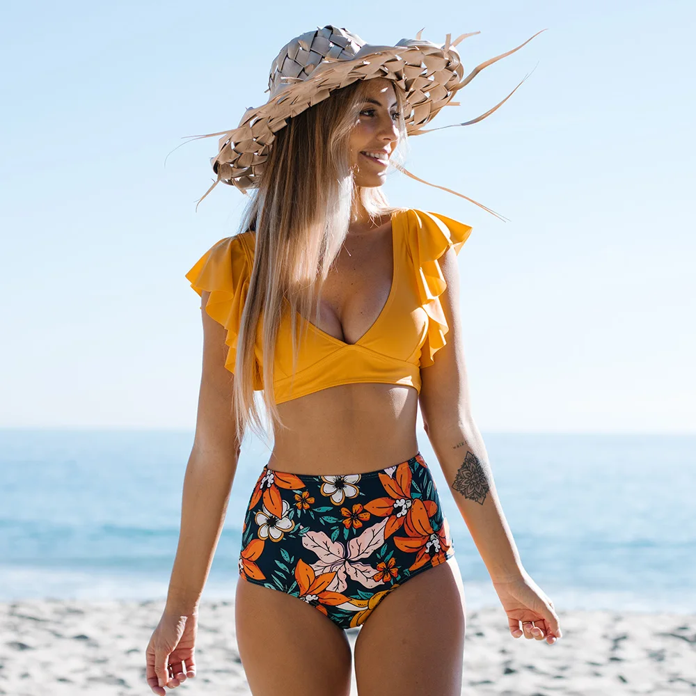 2022 новый сексуальный бразильский комплект бикини, женский купальник с оборками, женский купальник с цветочным принтом и пуш-ап, купальный костюм, бикини