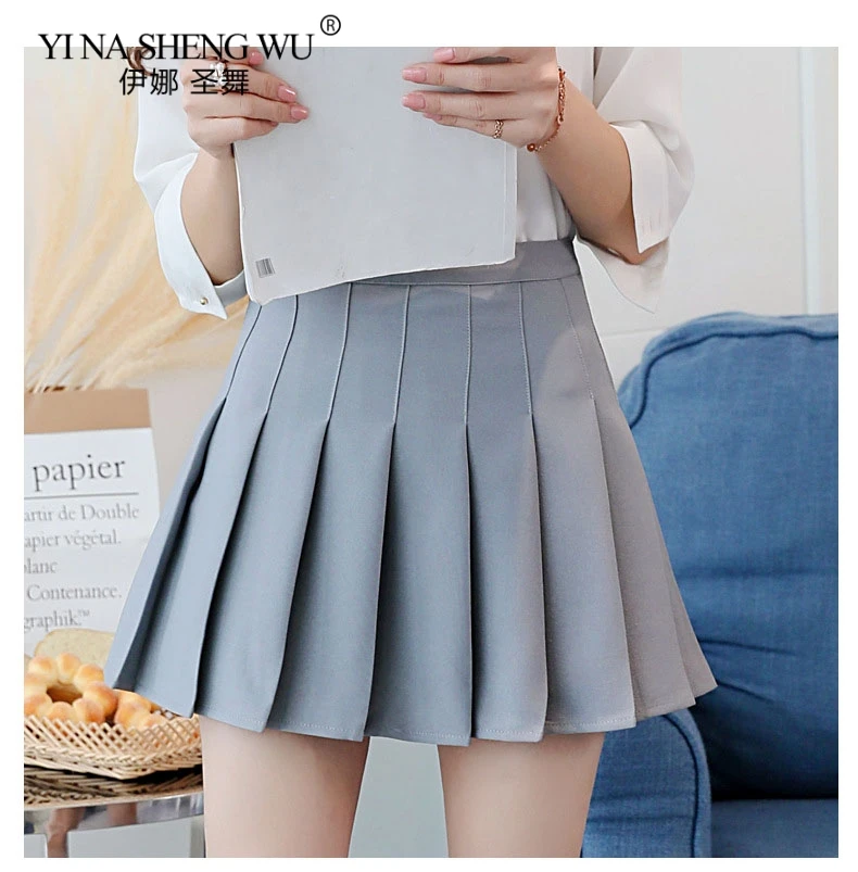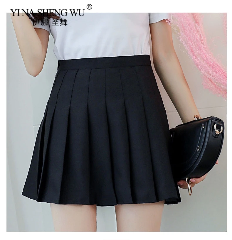 Женская милая плиссированная юбка в Корейском стиле с высокой талией, весенне-осенние повседневные кавайные трапециевидные юбки, японская школьная форма, мини-юбки