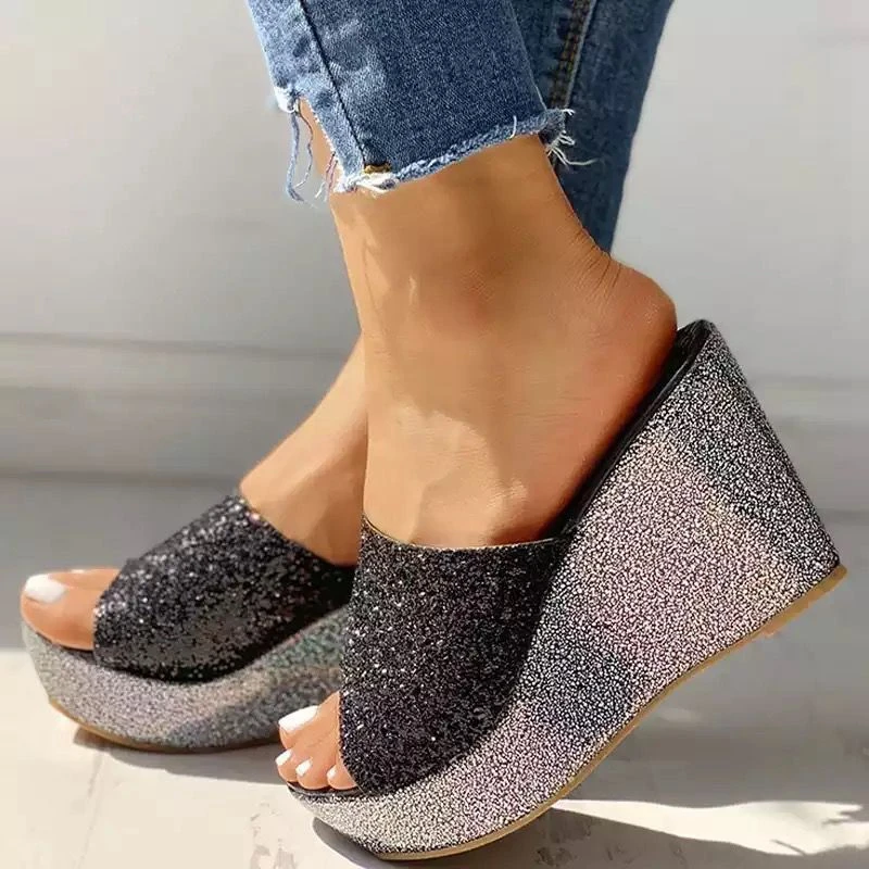 ASILETO обувь без шнуровки для отдыха; Летние сандалии на платформе 2021 обувь на танкетке и высоком каблуке; Шикарные женские босоножки с открытой пяткой флип-флоп Серебряный Свадебная вечеринка S2099