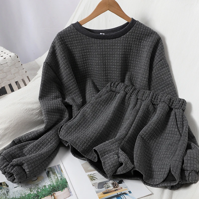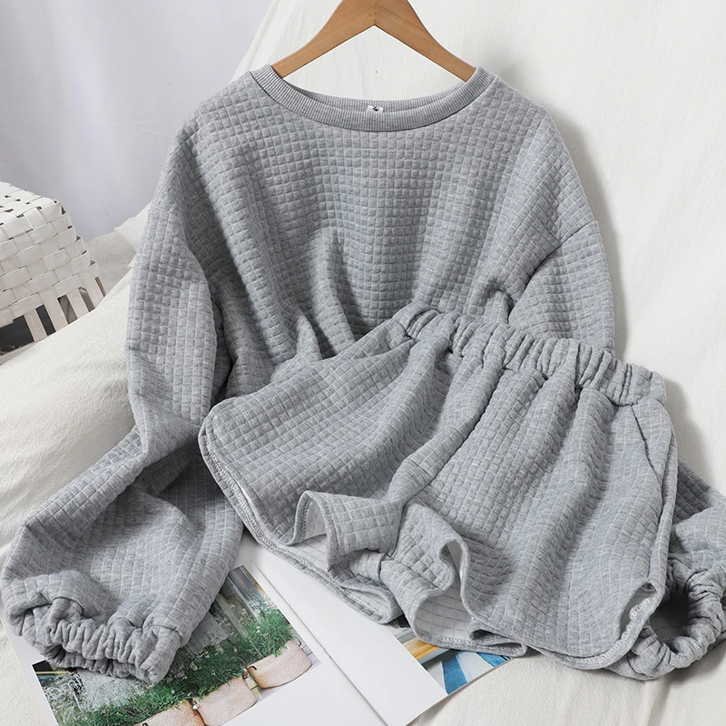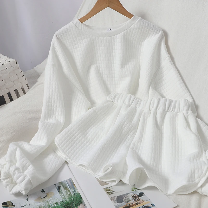 Женский комплект из 2 предметов, свитер с круглым вырезом и прямые широкие шорты с поясом на резинке, осенний костюм из двух предметов в Корейском стиле