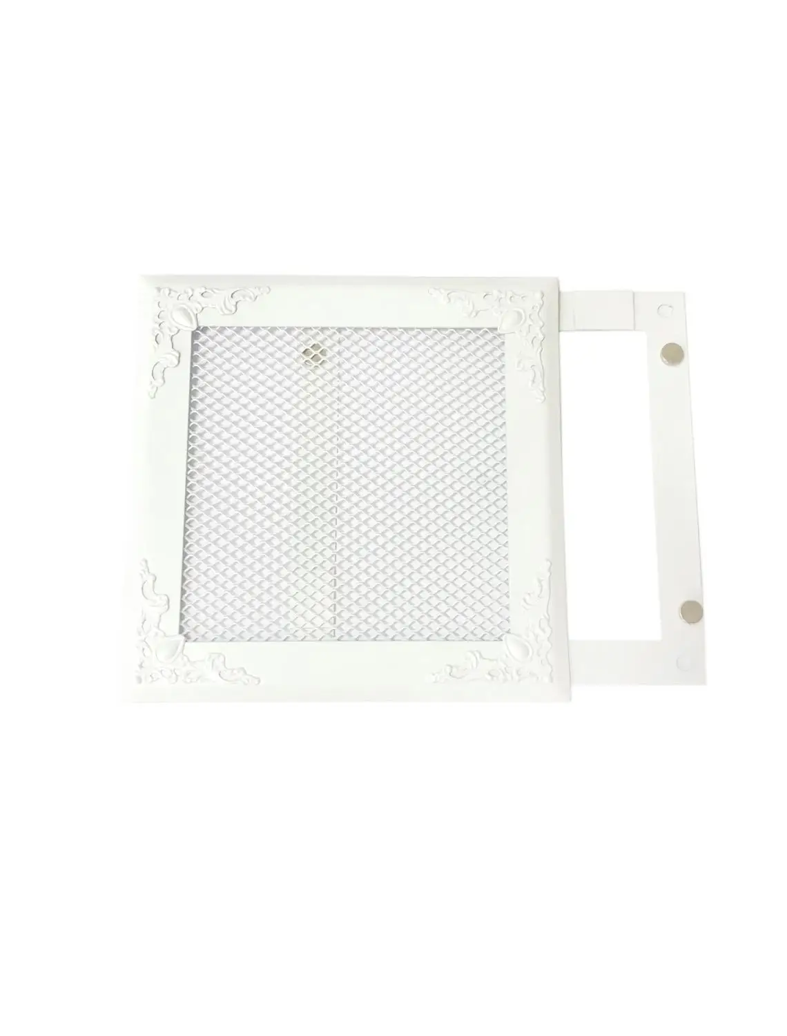 Декоративная вентиляционная решетка Высота, мм - 150 Ширина, мм - 150 Материал - сталь Цвет - белый матовый Рисунок - люкс Пакет - крафт дой-пак с zip lock Сертификация - не подлежит Срок службы не ограничен Производство - Россия (ПК ММТ) Решетка состоит из двух частей рамки для монтажа (крепится с помощью саморезов или клея) и решетки. На монтажной рамке закреплены неодимовые магниты, которые крепко держат саму декоративную решетку. Благодаря магнитам, крепление получается невидимым что не портит внешний вид, и позволяет без труда снимать решетку для обслуживания системы. Решетки применяются для обрамления вентиляционных вытяжных или приточных систем в квартирах, домах, в общественных или производственных помещениях. Дизайн и большая цветовая палитра, позволяет органично вписаться в любое дизайнерское решение и стиль. Диффузор подходит для настенного и потолочного монтажа.