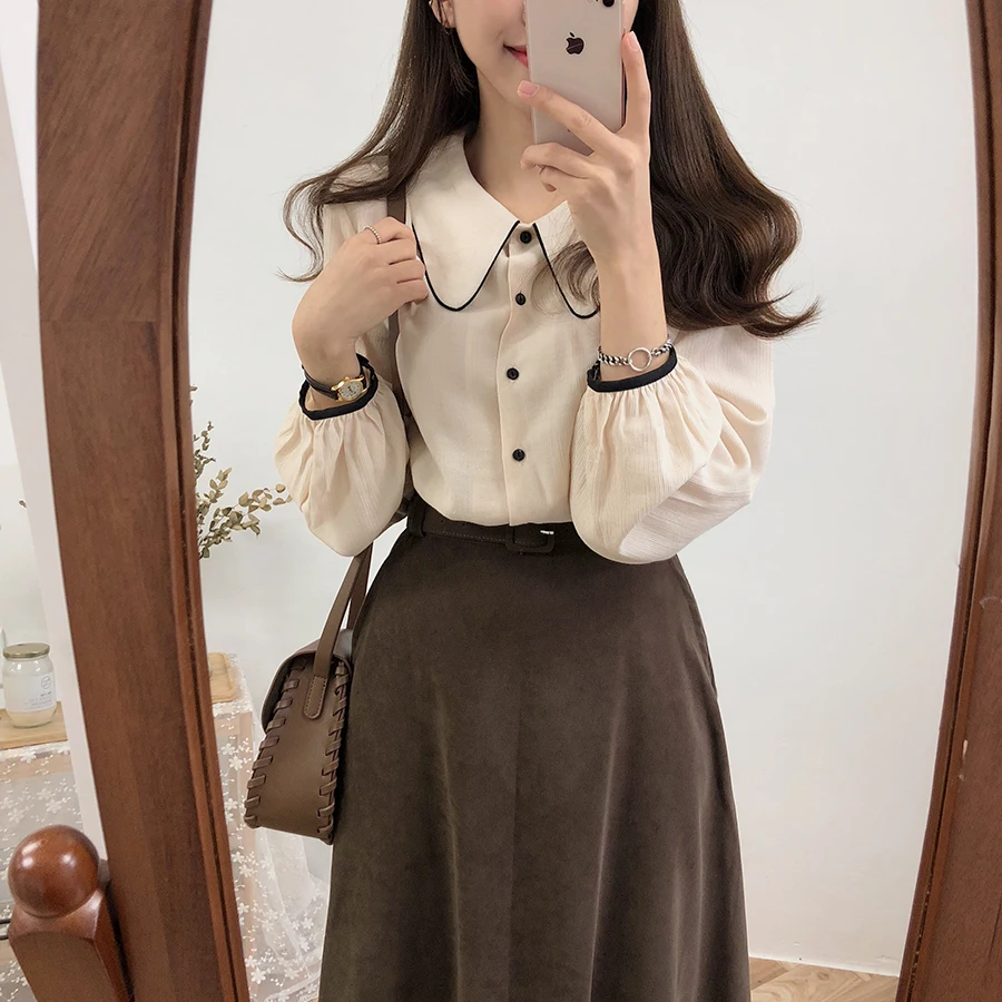 Блузка Женская Весенняя с воротником Питер Пэн, в стиле Ulzzang