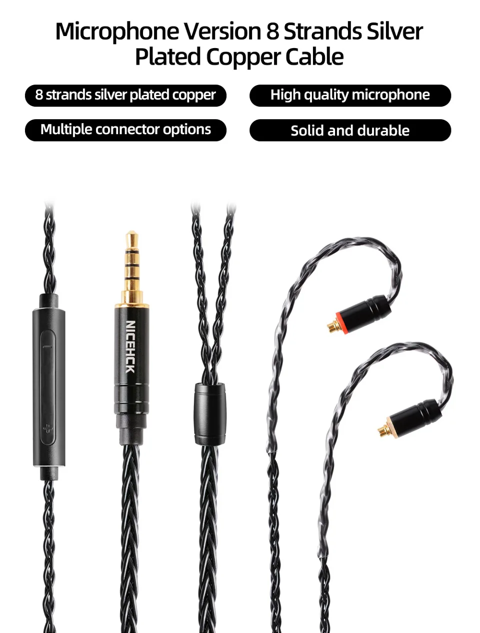 NICEHCK BlackWheat 8 Core с серебряным покрытием Медь микрофонный кабель MMCX/NX7/QDC/0,78 2Pin микрофон для DB3 C10 CA4 C12 C16 ZSN AS10 EDX