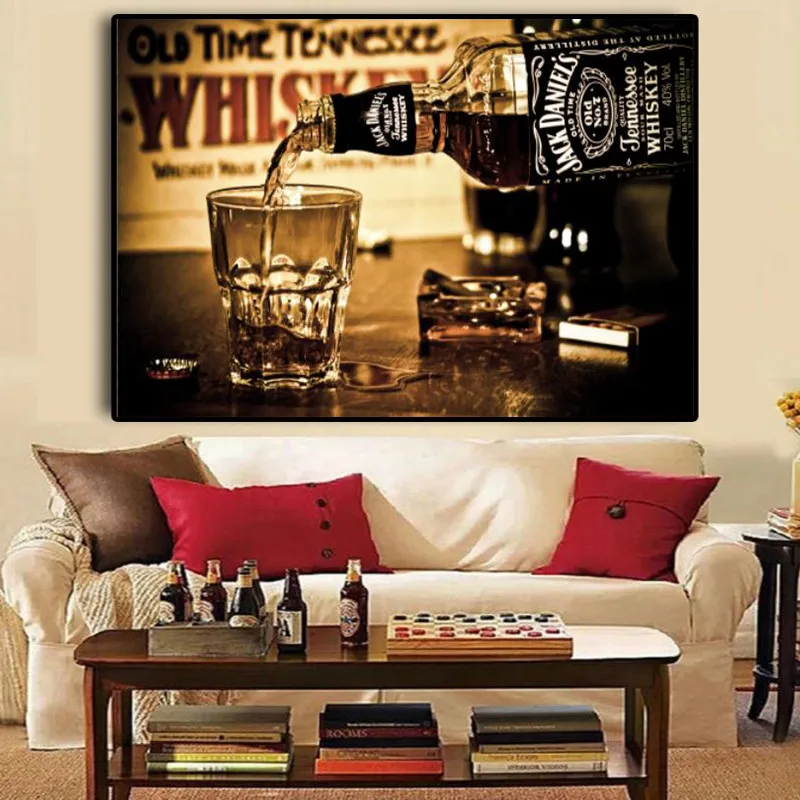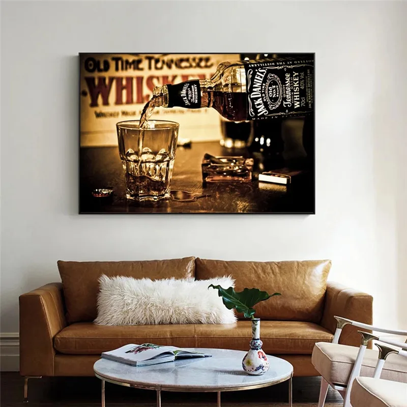 Северный плакат черный и белый винный стеклянный Настенный Художест...