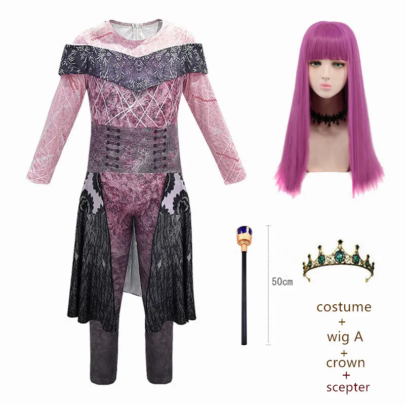 Одежда для вечеринки на Хэллоуин, комбинезоны для девочек, костюм для косплея потоков 3 мал Берта Малефисента, фиолетовый костюм Одри для косплея, наряды для девочек